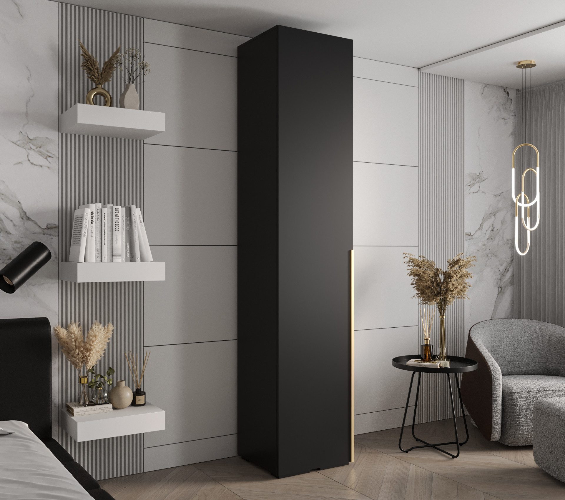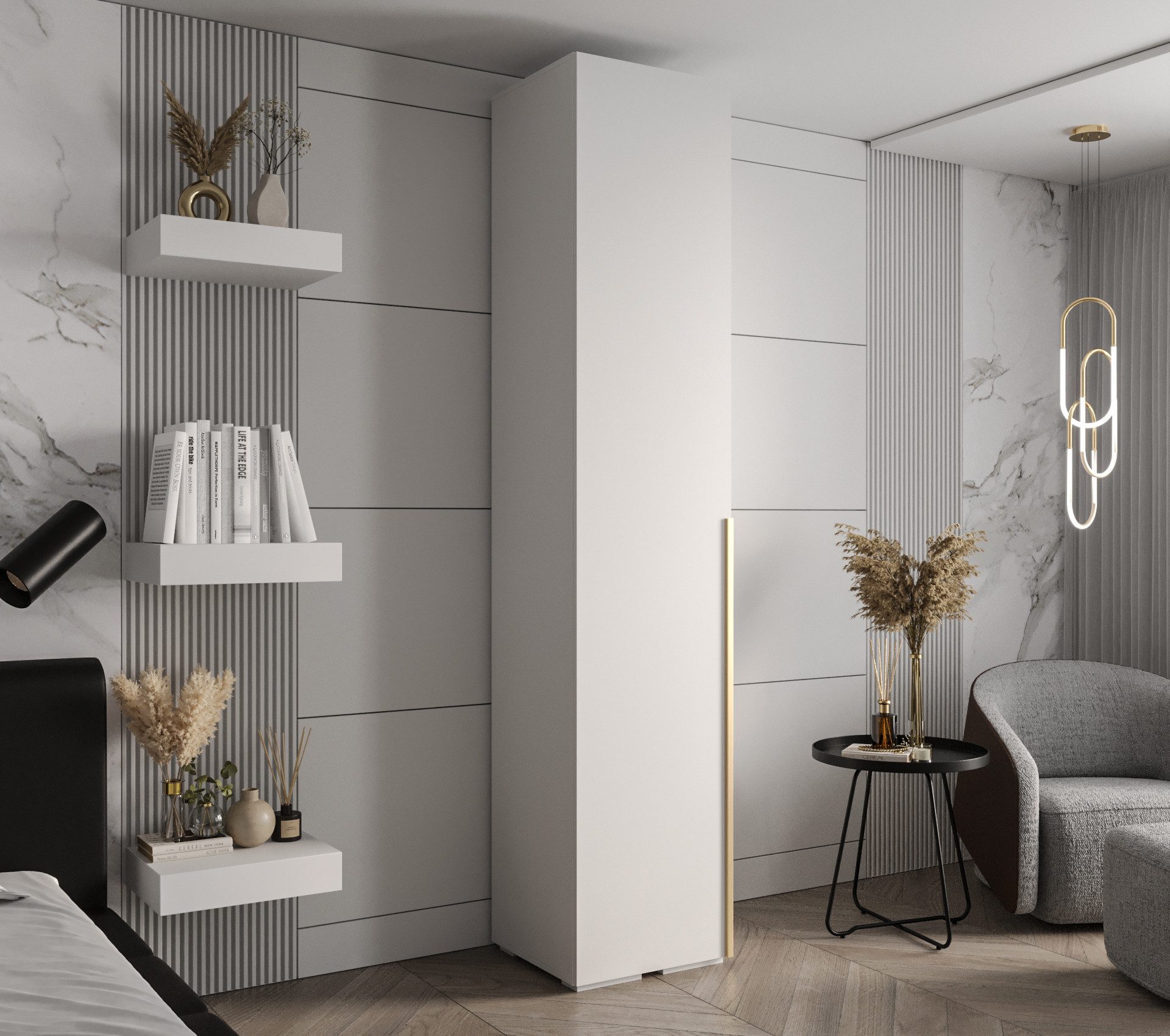 IVONA 1 Kleiderschrank - Scharnk, mit Einlegeböden und einer Stange, das elegante Design verleiht dem Schrank einen einzigartigen Charakter, er ist in vier Farben erhältlich, so dass er sowohl im Schlafzimmer, im Wohnzimmer als auch im Jugendzimmer seinen Platz finden wird! Der Kleiderschrank hat elegante goldene Griffe