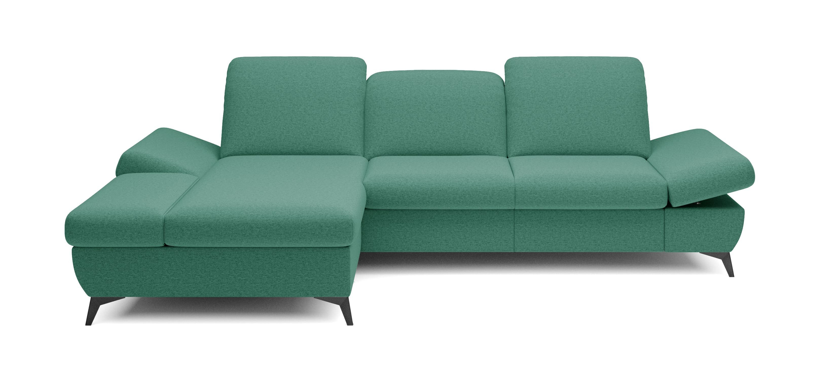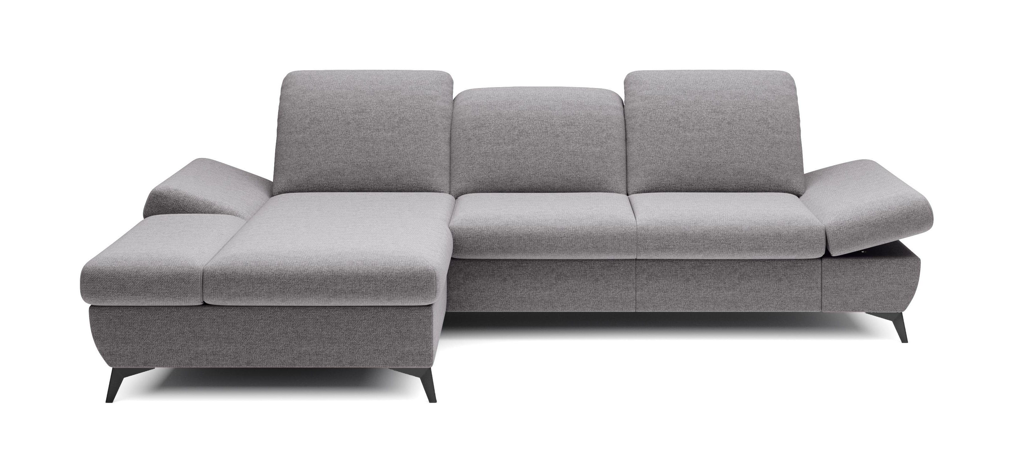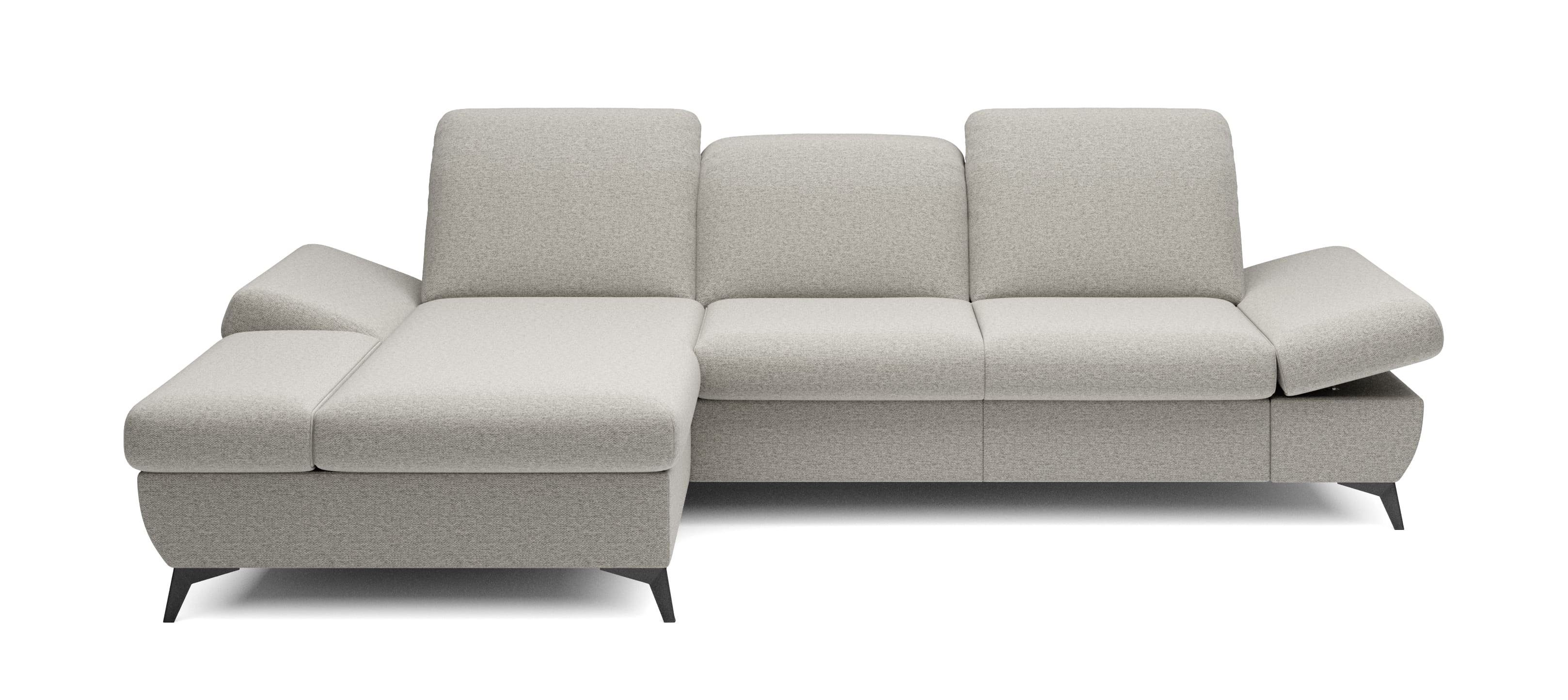 Die Funktionalität des Ecksofas HARPY macht es zu einem äußerst praktischen Möbelstück. Dank seiner Schlaffunktion lässt es sich in eine großzügige Liegefläche von 125 x 245 cm verwandeln, die für eine erholsame Nachtruhe sorgt. Die umklappbare Rückenlehne ermöglicht eine individuelle Anpassung der Kopfstütze, sodass Sie immer die ideale Position für Entspannung und Komfort finden können. Die Armlehnen sind ebenfalls verstellbar und bieten die Möglichkeit, sie flach zu stellen, um mehr Platz zu schaffen, oder sie angewinkelt zu lassen, um bequem ein Buch zu lesen oder einfach zu entspannen.