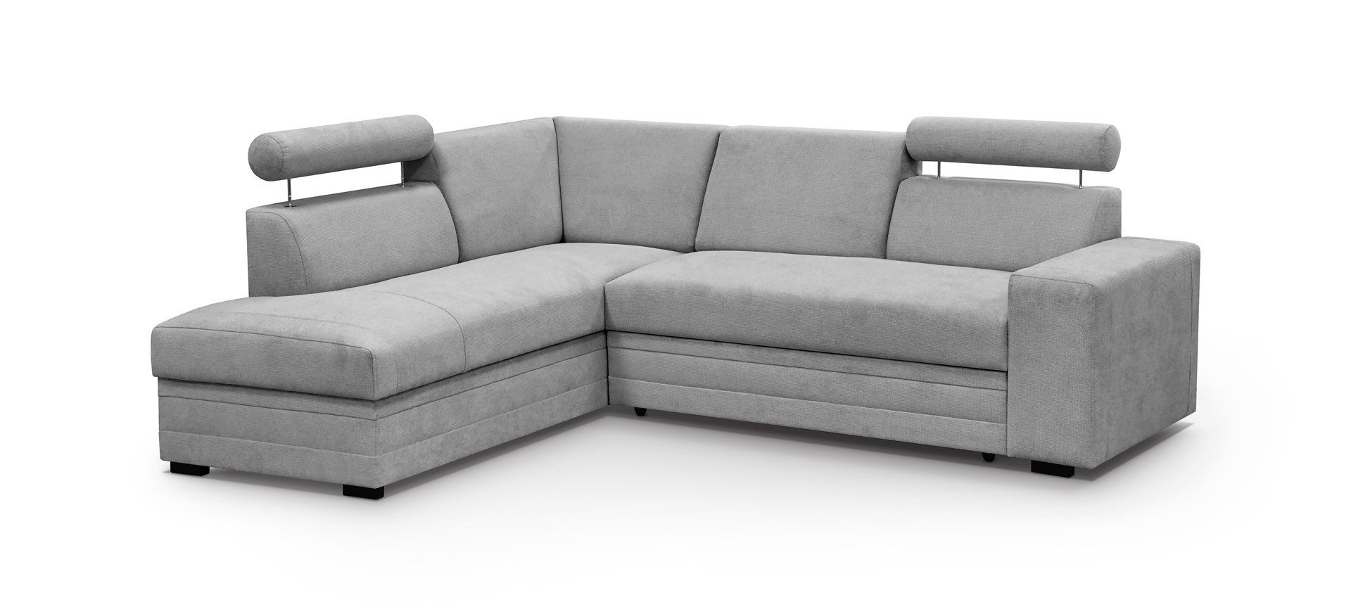 Das Ecksofa Jackson bietet durch seine ergonomische Form, verstellbare Kopfstützen und weiche Rückenkissen höchsten Komfort. Die Schlaffunktion und der praktische Bettkasten machen es ideal für den täglichen Gebrauch oder als Gästebett. Der angenehme Stoffbezug schafft eine gemütliche Atmosphäre und lädt zum Entspannen ein.
