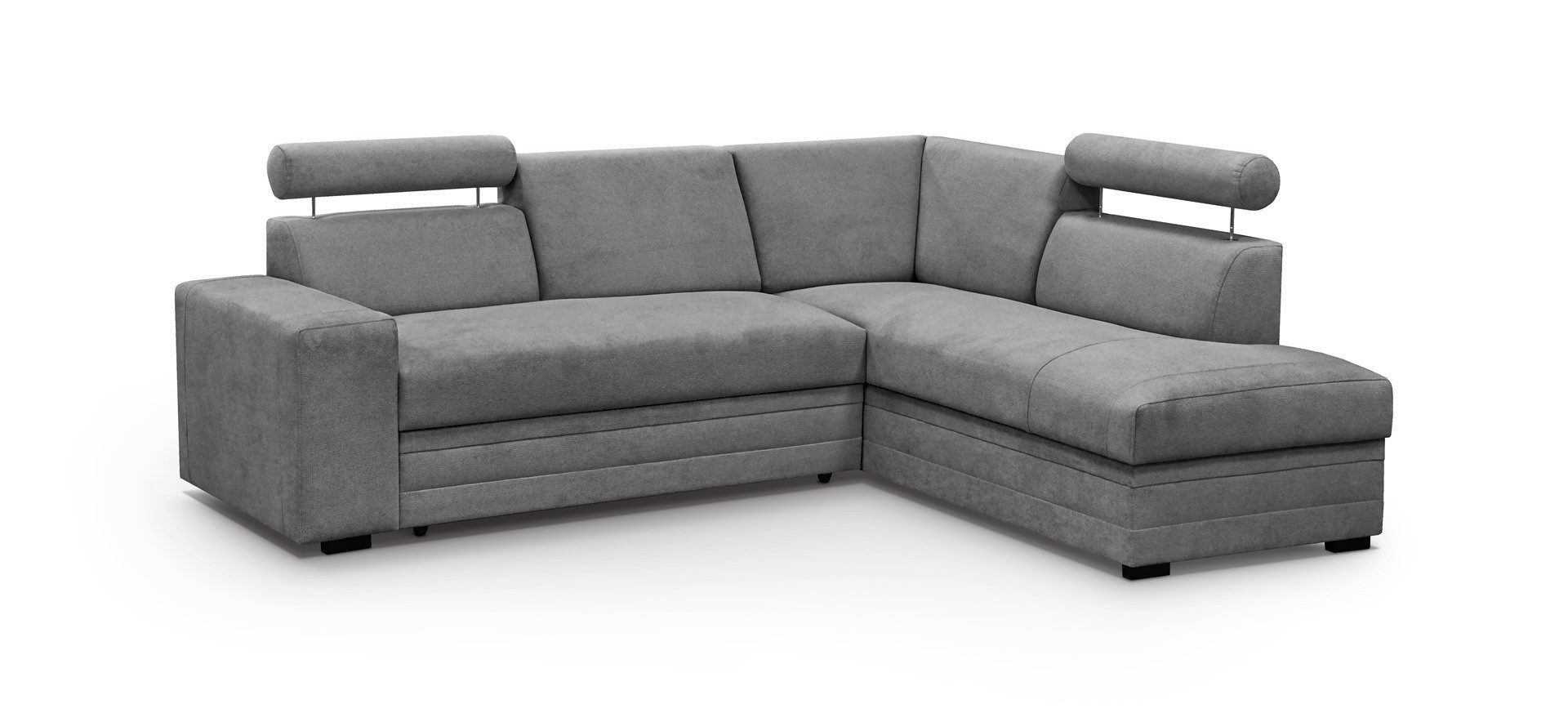 Das Ecksofa Jackson bietet durch seine ergonomische Form, verstellbare Kopfstützen und weiche Rückenkissen höchsten Komfort. Die Schlaffunktion und der praktische Bettkasten machen es ideal für den täglichen Gebrauch oder als Gästebett. Der angenehme Stoffbezug schafft eine gemütliche Atmosphäre und lädt zum Entspannen ein.