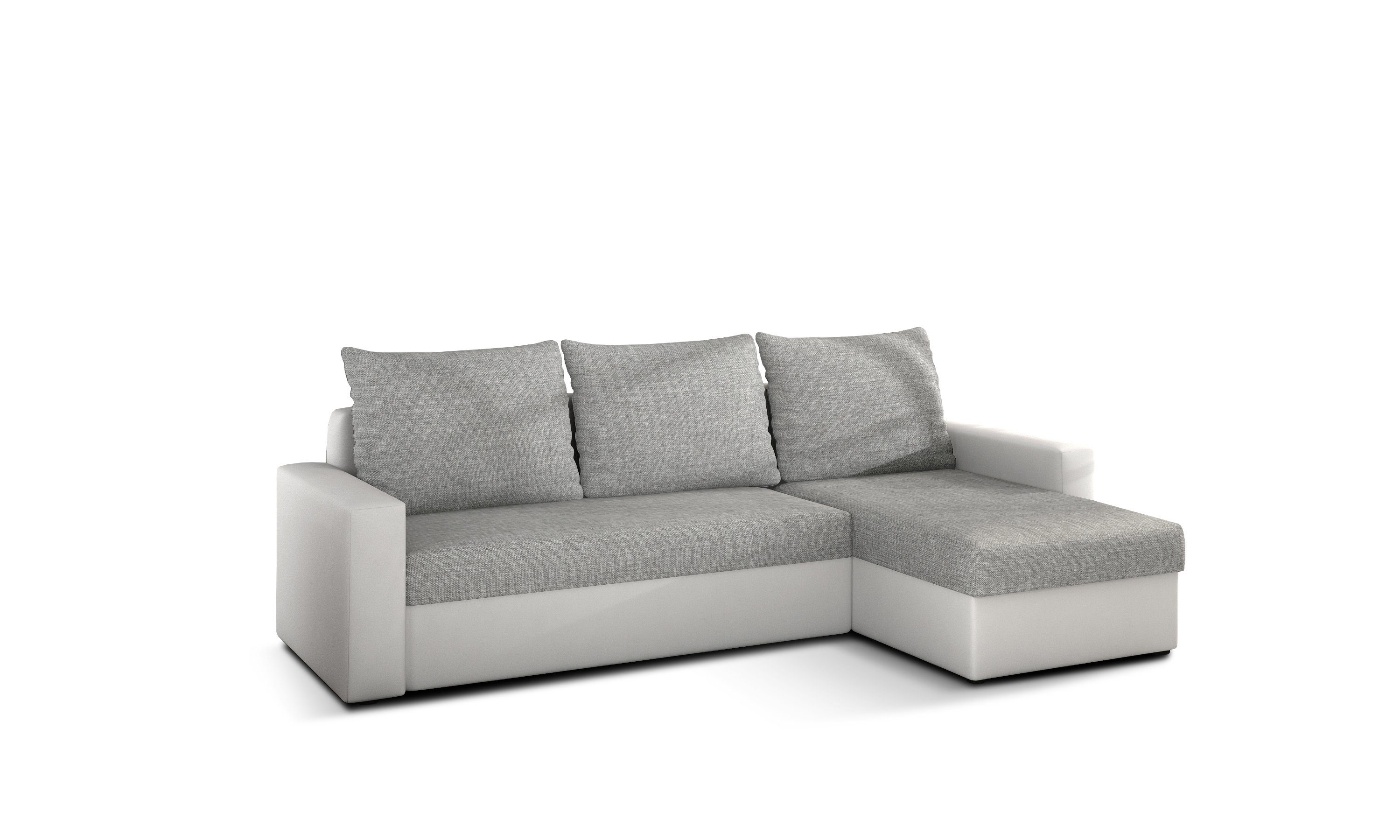 Ein Highlight des Ecksofas LORENO ist die praktische Schlaffunktion, die es ermöglicht, das Sofa schnell und unkompliziert in ein bequemes Bett zu verwandeln. Nach dem Ausklappen bietet es eine großzügige Liegefläche von 125 x 195 cm – ideal für Gäste oder spontane Übernachtungen. Zusätzlich verfügt das Sofa über ein Bettzeugfach, das sich bequem in der Ottomane befindet und ausreichend Stauraum für Kissen, Decken und andere Schlafutensilien bietet.