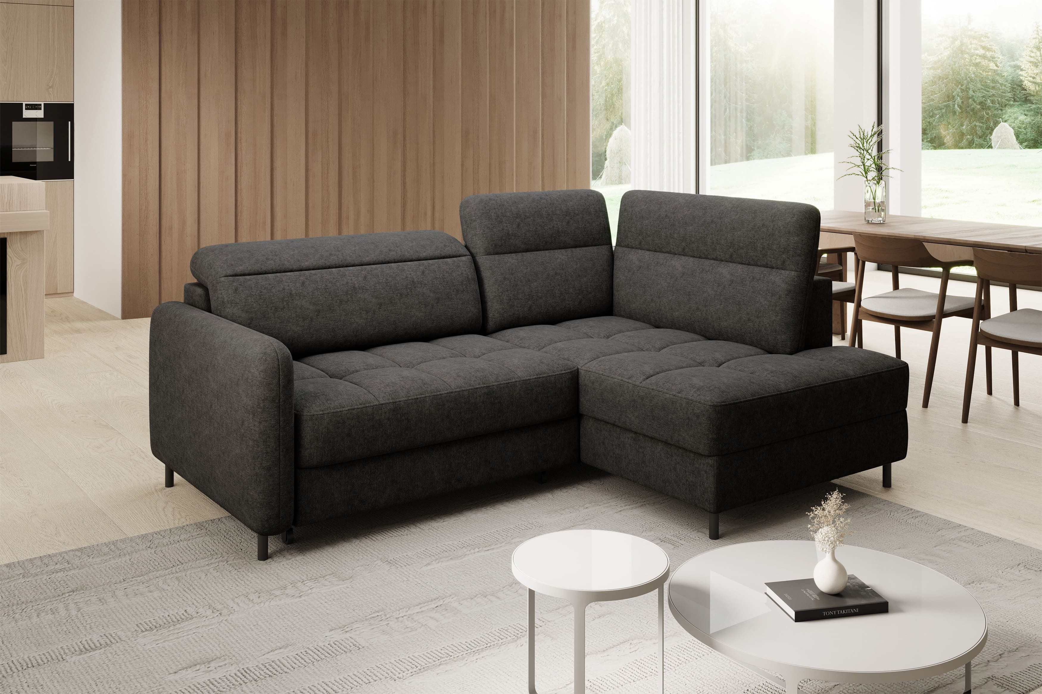 Das moderne Ecksofa Rebis überzeugt durch elegantes Design, hohen Komfort und praktische Funktionen. Mit verstellbaren Kopfstützen, einem integrierten Bettkasten und einer komfortablen Schlaffunktion ist dieses Sofa die ideale Wahl für den täglichen Gebrauch und entspannte Abende.