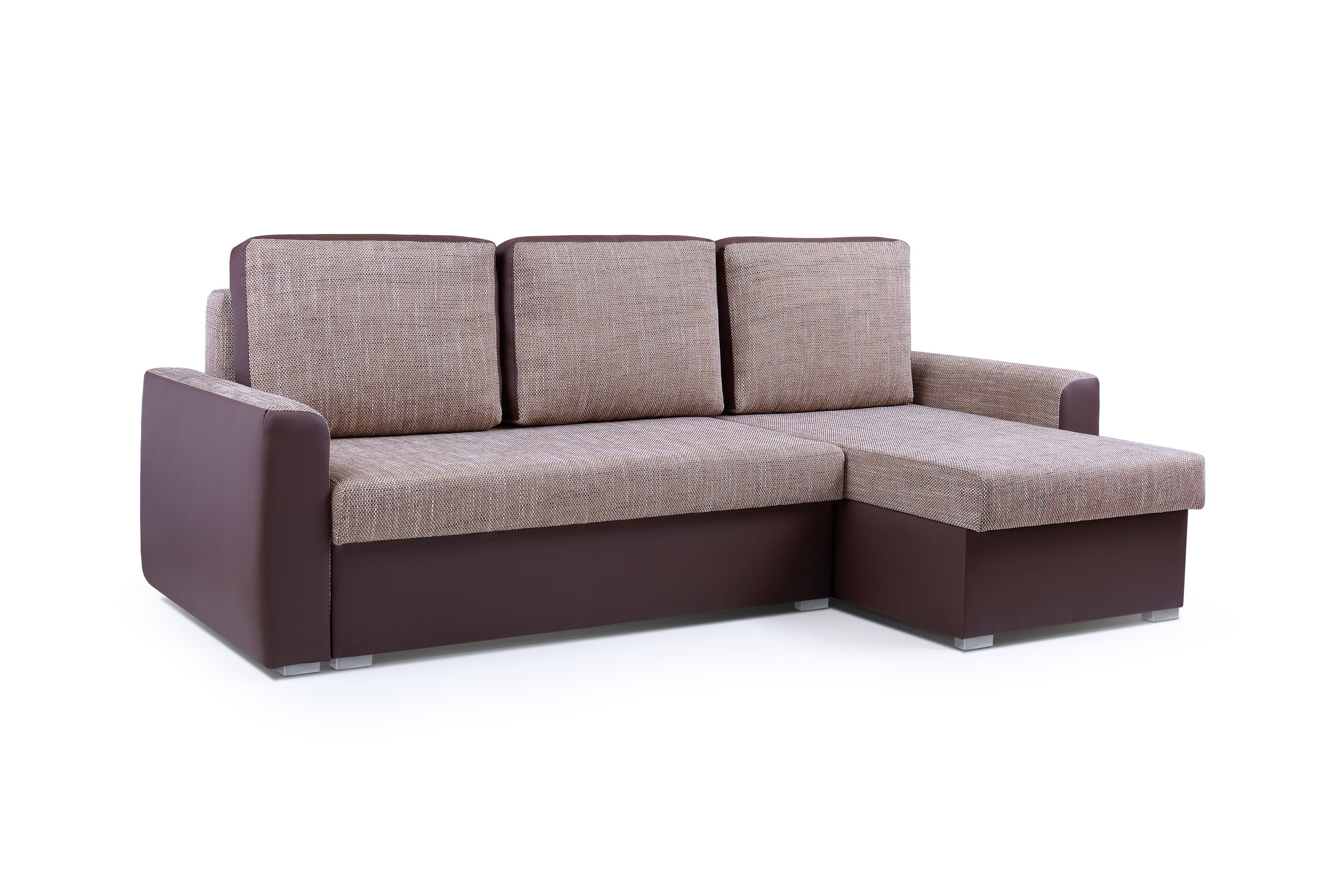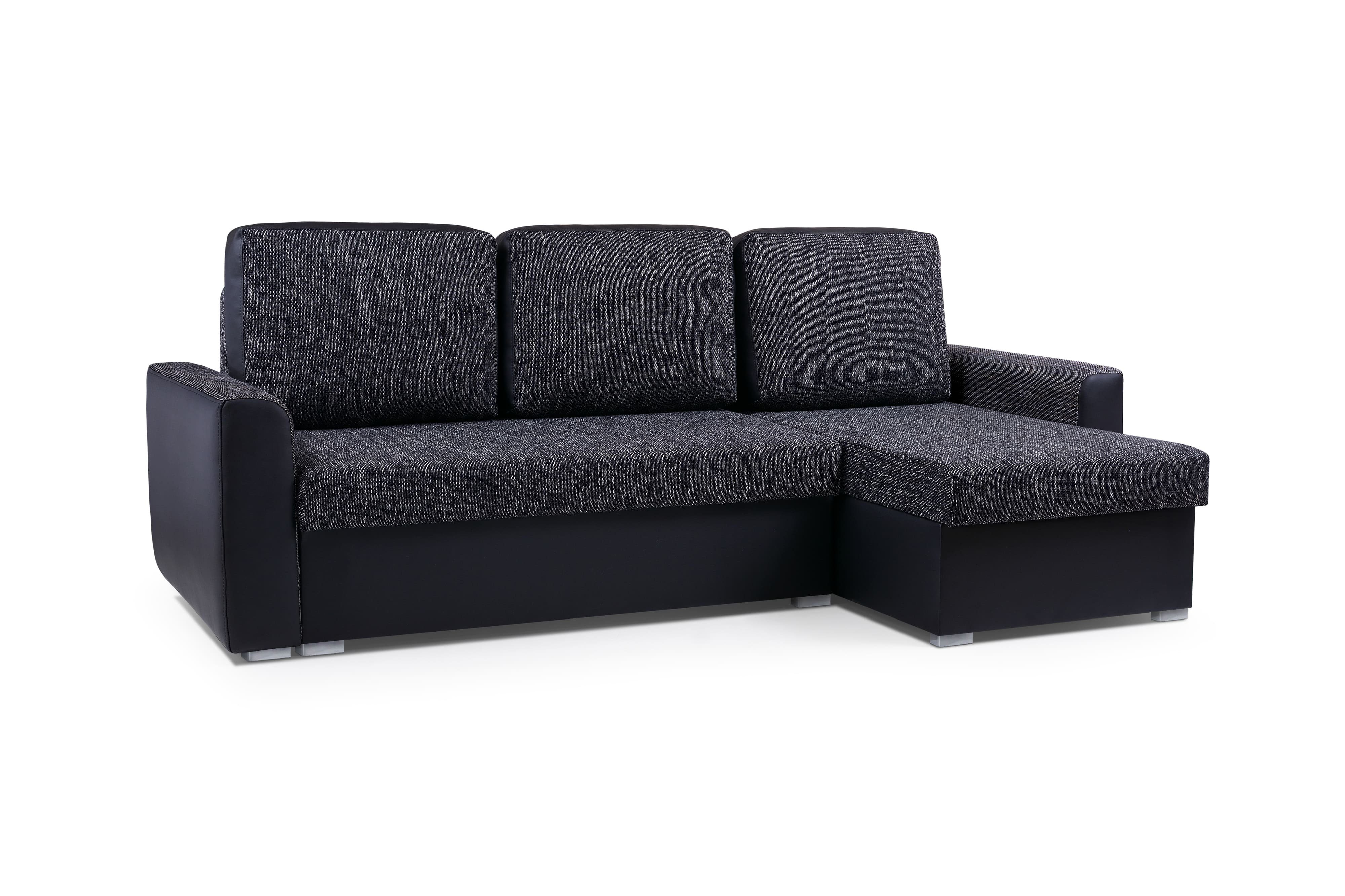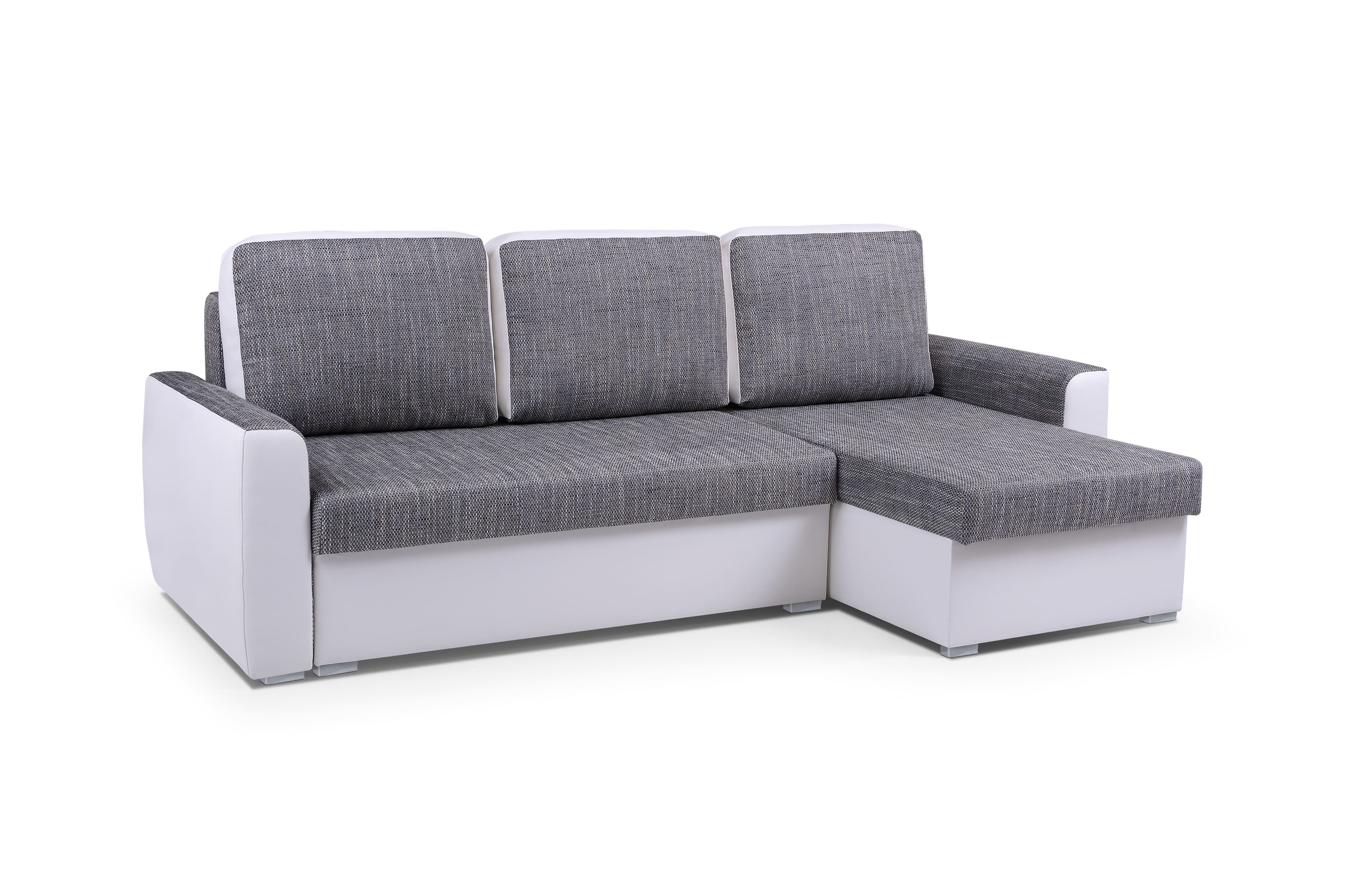 Das Ecksofa SILVA besticht durch seine Schlichtheit. Die Kombination von Öko-Leder mit strukturiertem Stoff ist eine ideale Lösung für alle, die sowohl den modernen Look als auch die Haltbarkeit der verwendeten Stoffe schätzen. Das Ecksofa ist mit zwei Bettkästen ausgestattet, was viel Platz spart. Das automatische Aufklappsystem ermöglicht es, das Möbelstück ohne großen Aufwand und ohne Schwierigkeiten umzubauen und die Schlaffunktion zu nutzen.