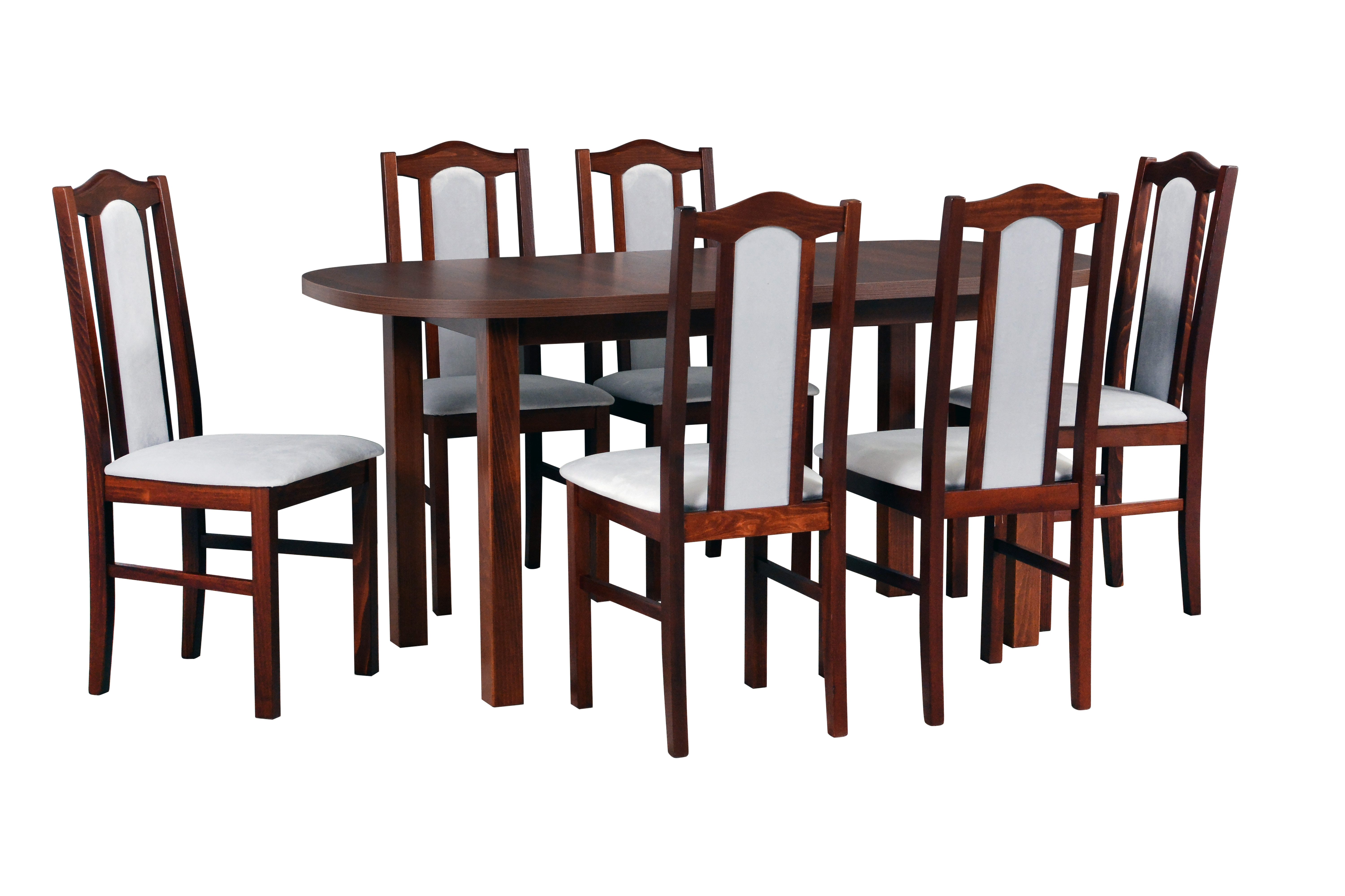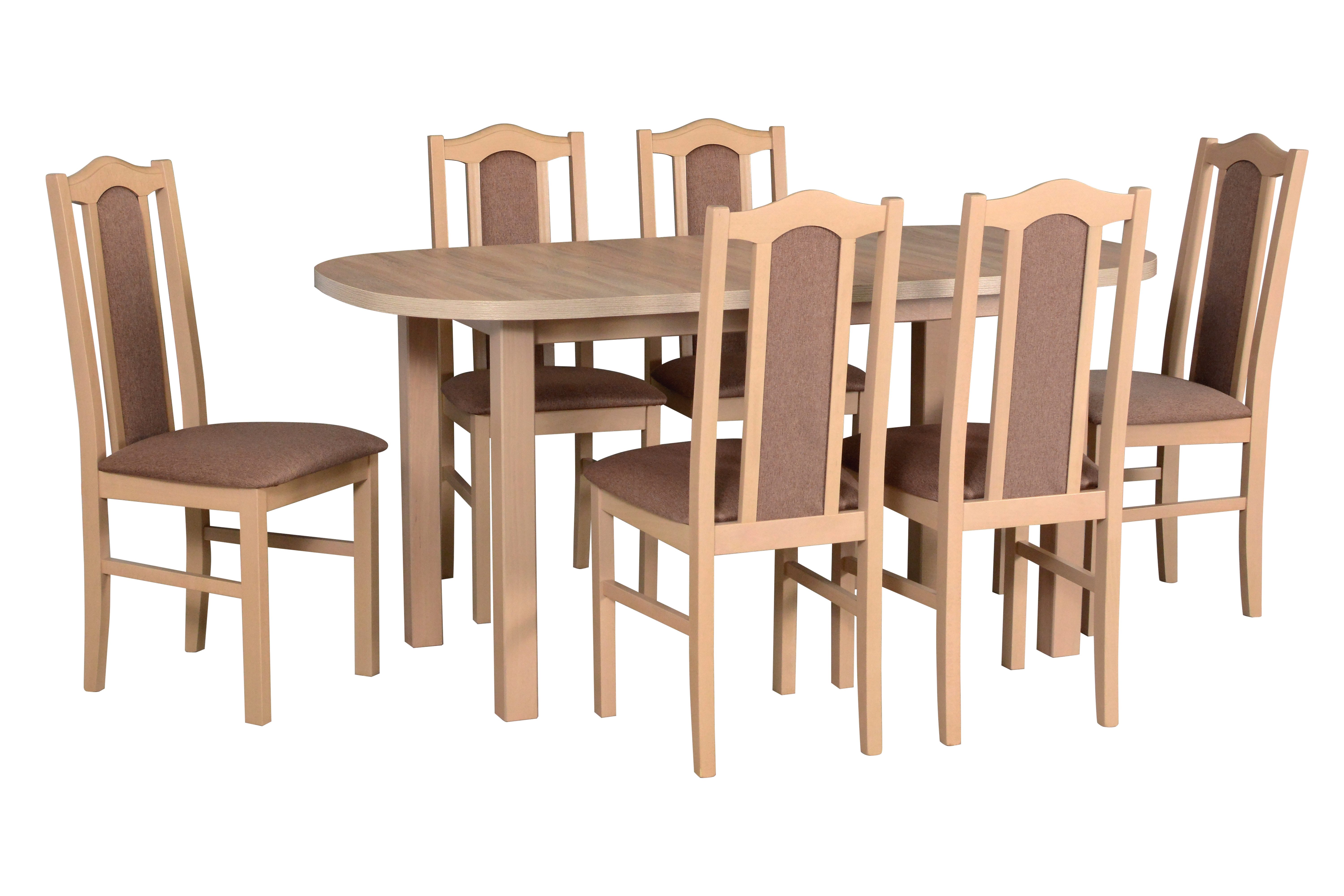 Ein Esszimmergruppe - Beso 2 + Vendo 1, das sich ideal für das Esszimmer oder die Küche eignet und eine stilvolle und funktionelle Einrichtung bietet. Bestehend aus einem soliden Tisch und bequemen Stühlen, ist dieses Set perfekt für Familienmahlzeiten, Versammlungen mit Freunden. Aus hochwertigen Materialien gefertigt, garantiert es Langlebigkeit und Eleganz in jedem Interieur. Das Set enthält 6 Stühle und 1 Tisch.