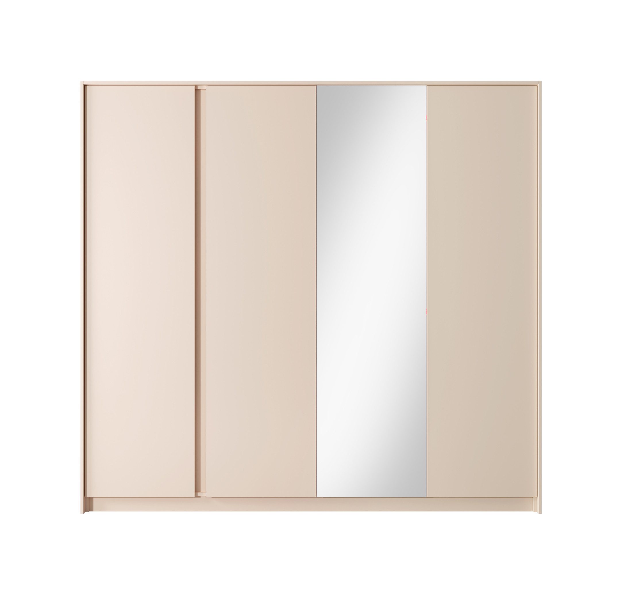 Großer, extrem packbarer beiger Kleiderschrank in der Размер 220 cm. Das bewährte und funktionelle Push-to-Open-Türöffnungssystem ist äußerst praktisch. Der Spiegel an der Vorderseite ist eine großartige Lösung für den Flur - wir können hineinschauen, bevor wir gehen.