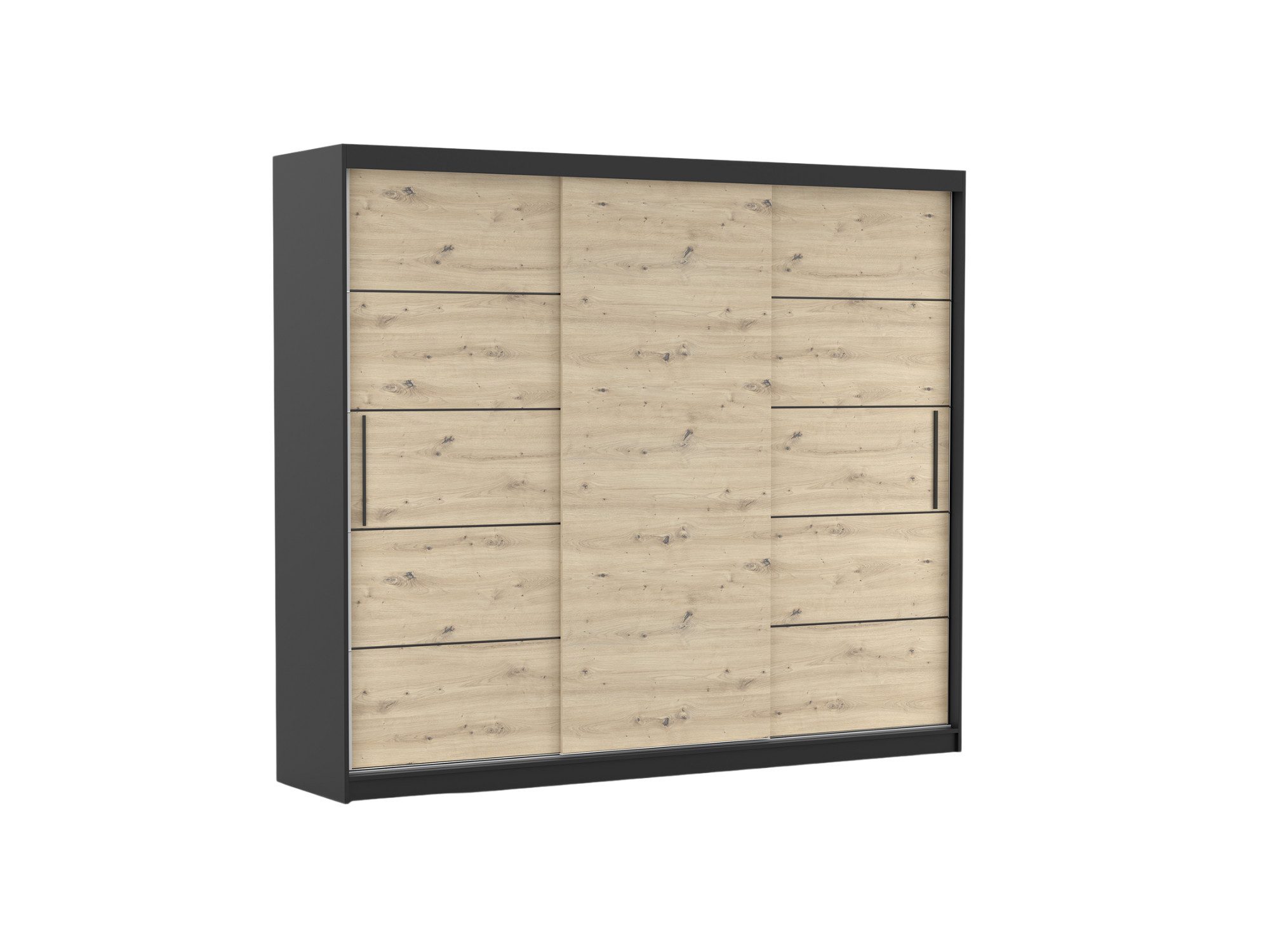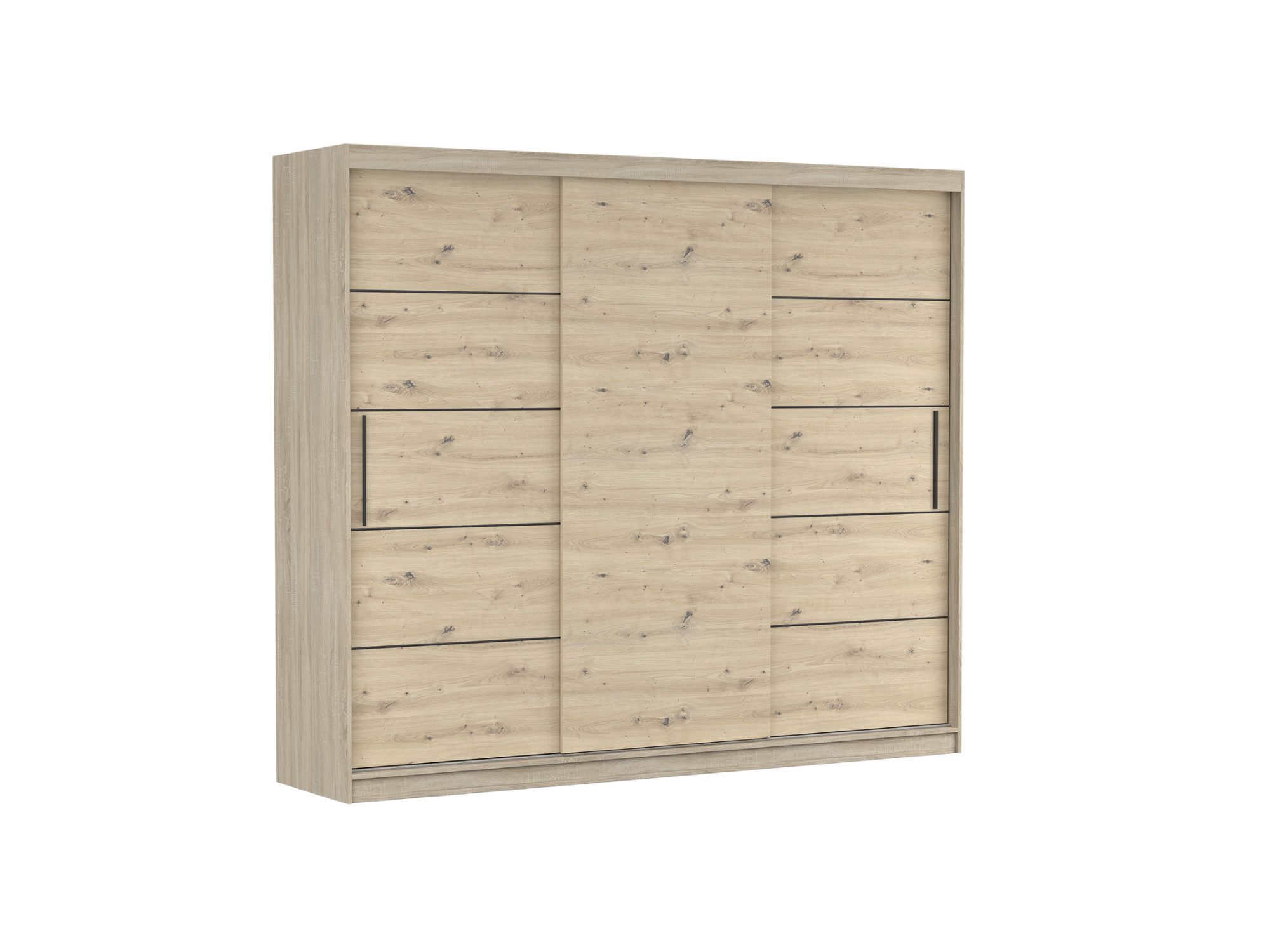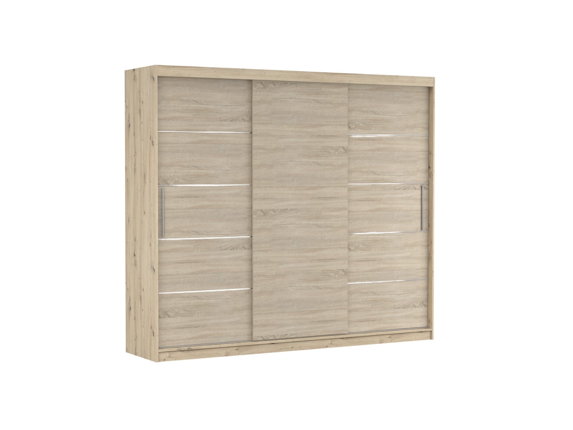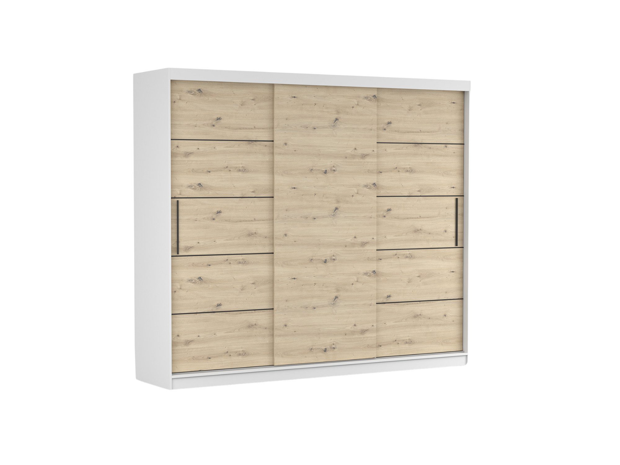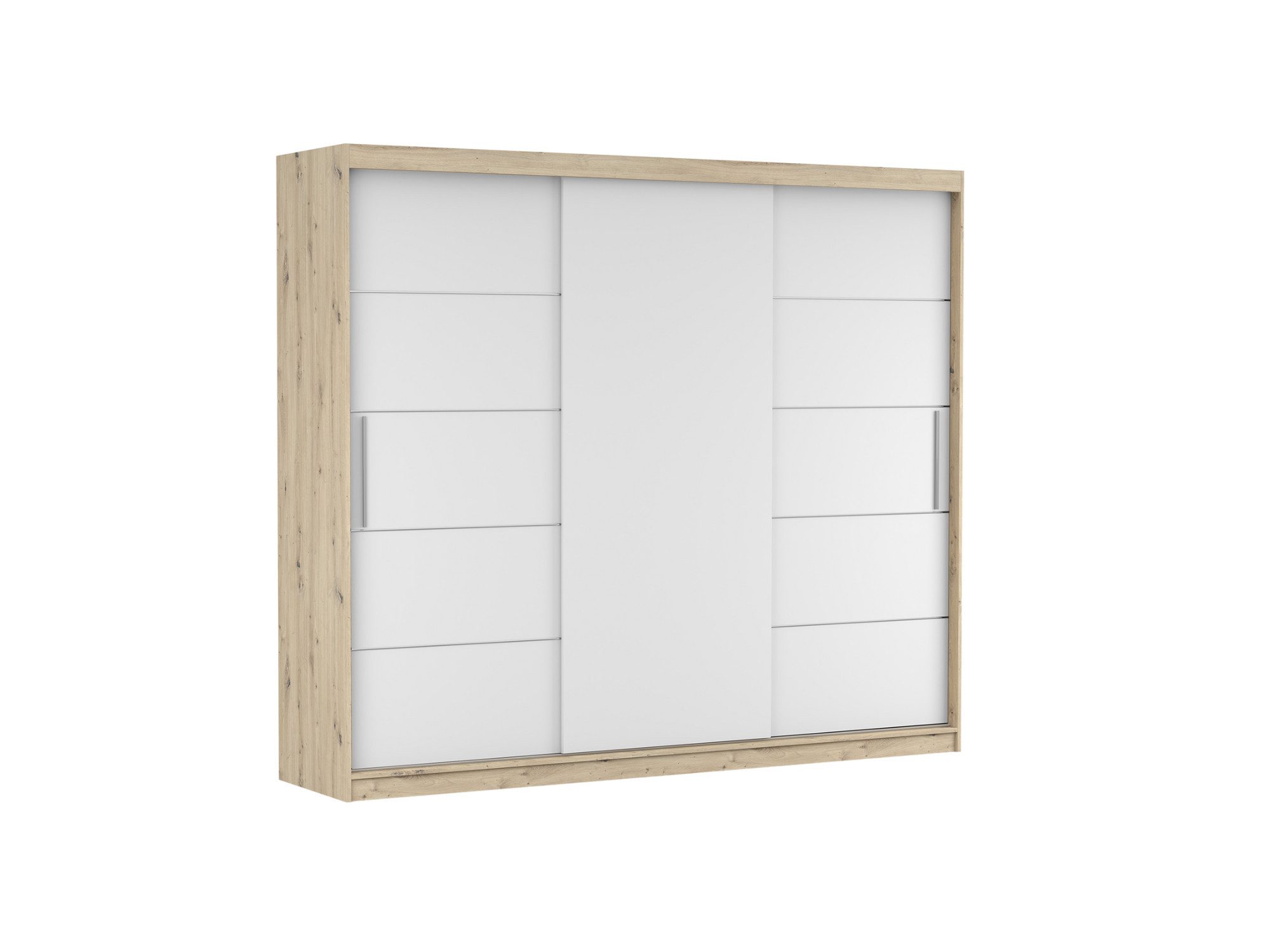 Der Kleiderschrank ELBA II ist die perfekte Lösung für all Ihre Aufbewahrungsbedürfnisse und bietet großzügigen Stauraum in einem eleganten und funktionalen Design. Mit seinem modernen und minimalistischen Look passt dieser Schiebeschrank sowohl in Schlafzimmer, Flure als auch Ankleidezimmer. Er ist die ideale Wahl für die Aufbewahrung von Oberbekleidung, Kleidern, Bettzeug, Decken und anderen alltäglichen Gegenständen. Der ELBA II wurde entwickelt, um Ihre Kleidung zu organisieren und gleichzeitig stilvoll in Ihr Zuhause zu integrieren.
