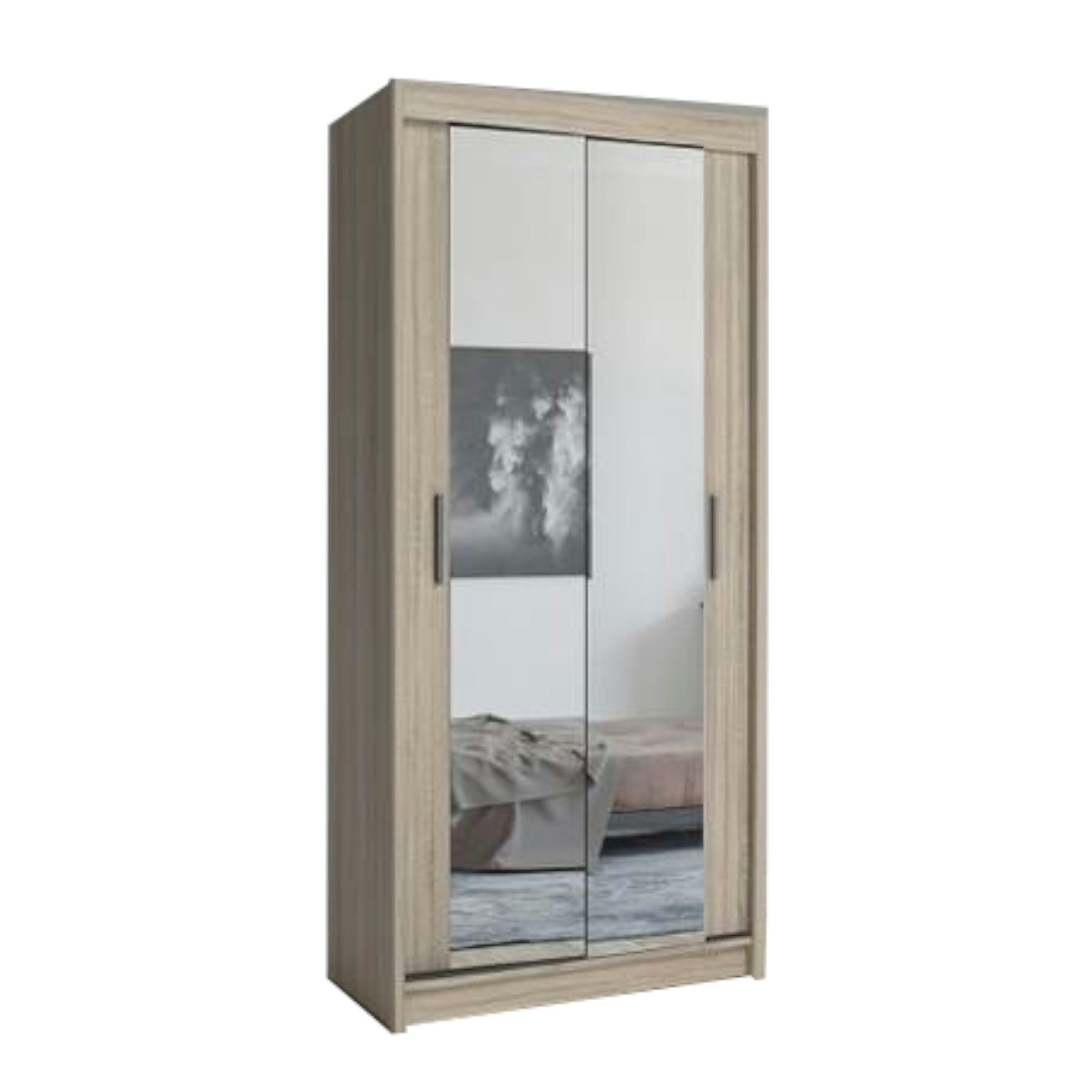 Der MINI CLASSIC Schrank bietet eine Kombination aus praktischem Stauraum und stilvollem Design, ideal für Räume, in denen jeder Zentimeter zählt. Mit seiner schlichten, aber eleganten Optik passt er perfekt in moderne sowie klassische Einrichtungen. Die Schiebetüren mit integriertem Spiegel sind nicht nur funktional, sondern auch ein echtes Highlight, da sie den Raum optisch vergrößern und gleichzeitig als Spiegel dienen. Die eleganten, silbernen Griffe verleihen dem Schrank einen Hauch von Modernität und machen ihn zu einem Hingucker in jedem Raum.