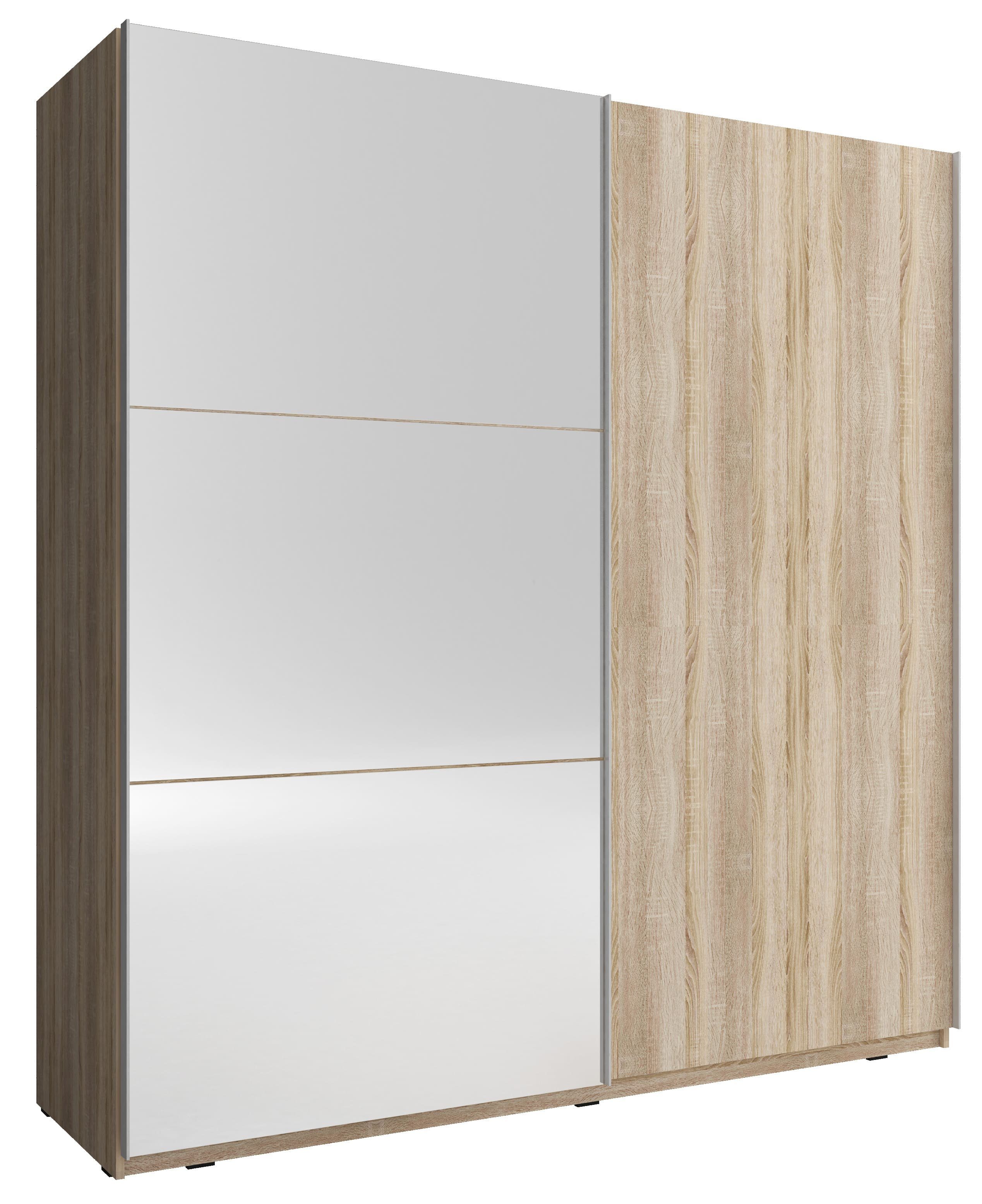 Modellbezeichnung | Kleiderschrank mit Spiegel Schwebetürenschrank 2-türig mit Einlegeböden und Kleiderstange Schlafzimmer- Wohnzimmerschrank Schrank Gaderobe Schiebtüren - NELE |
