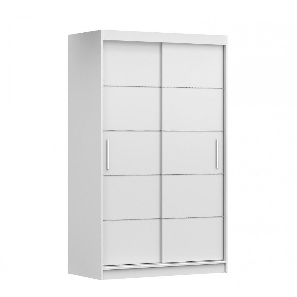 Modellbezeichnung | Schlafzimmerschrank mit 2 Schiebetüren + dekorativen Elementen aus Aiminium Kleiderschrank (Stange) mit Einlegeböden (BxHxT): 120x200x61cm - NOAH 06 |
