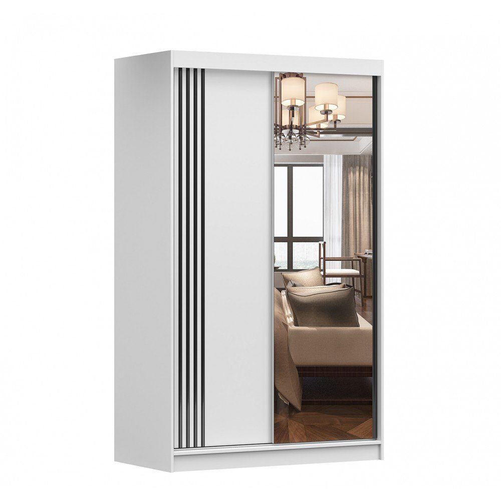 Modellbezeichnung | Kleiderschrank mit Spiegel Schwebetürenschrank 2-türig Schrank mit Einlegeböden und Kleiderstange Schiebtüren Schlafzimmer Wohnzimmerschrank (BxHxT) 120x200x61 cm - NOAH 07 |