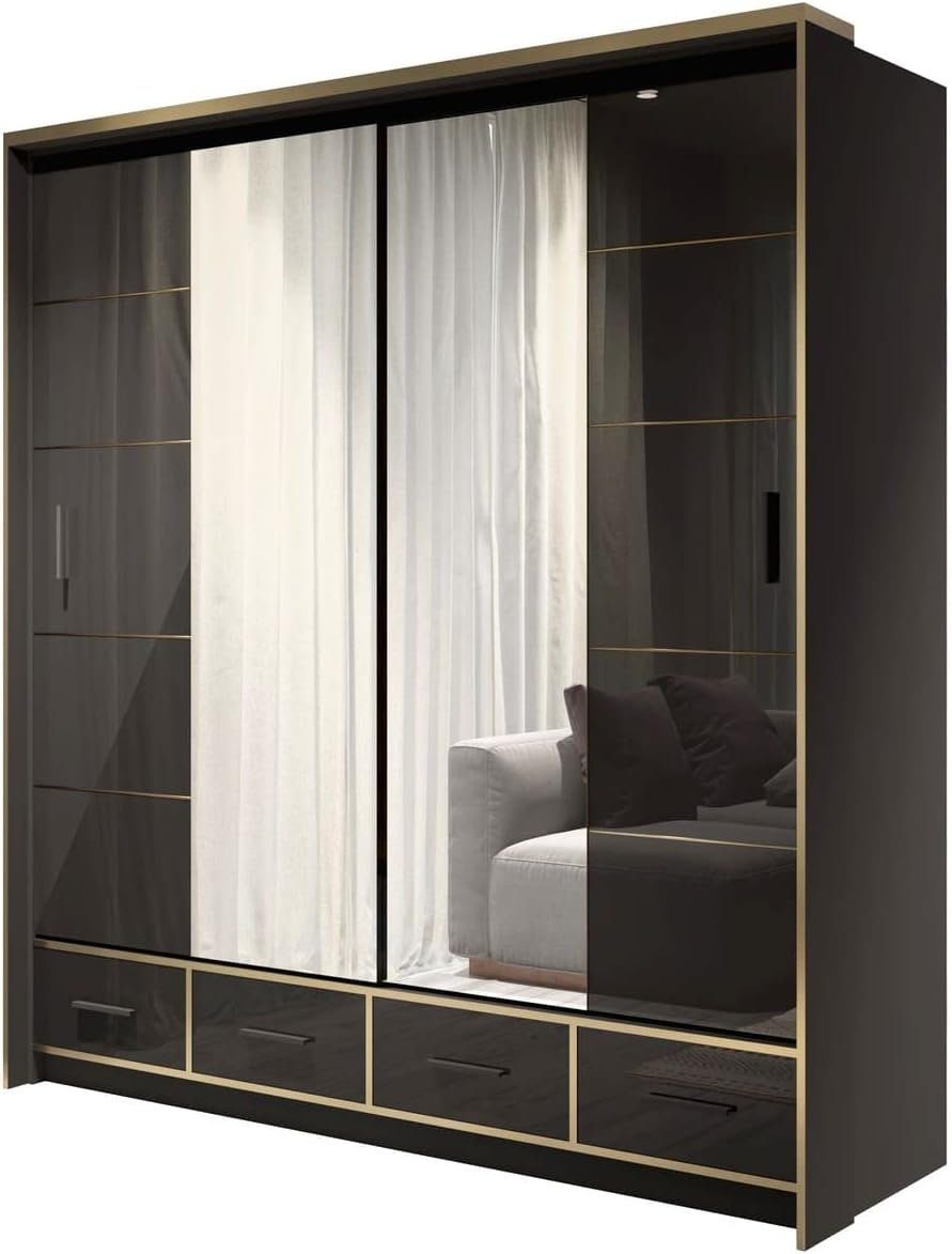 Modellbezeichnung | Kleiderschrank mit Spiegel Schwebetürenschrank 2/3-türig Schrank mit vielen Einlegeböden und Kleiderstange Gaderobe Schiebtüren Schlafzimmer - Modern Design (BxHxT) 203/253x220x66cm - SERAPHINE |