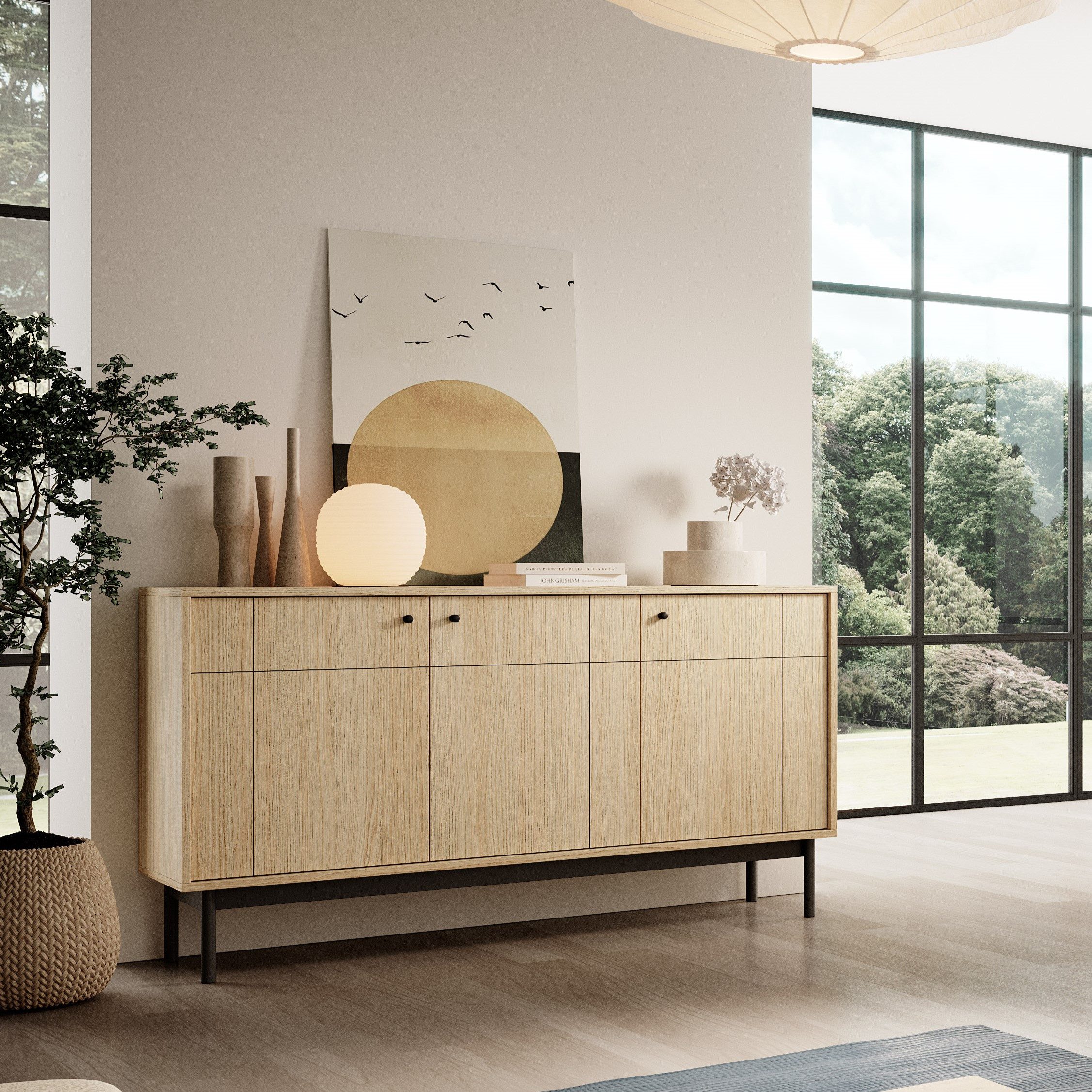 Die Kommode Ismene ist nicht nur schön anzusehen, sondern auch äußerst funktionell. Ausgestattet mit einem geräuschlosen Schließsystem garantiert sie einen hohen Bedienkomfort und die schwarzen Knöpfe verleihen ihr einen minimalistischen Charme.