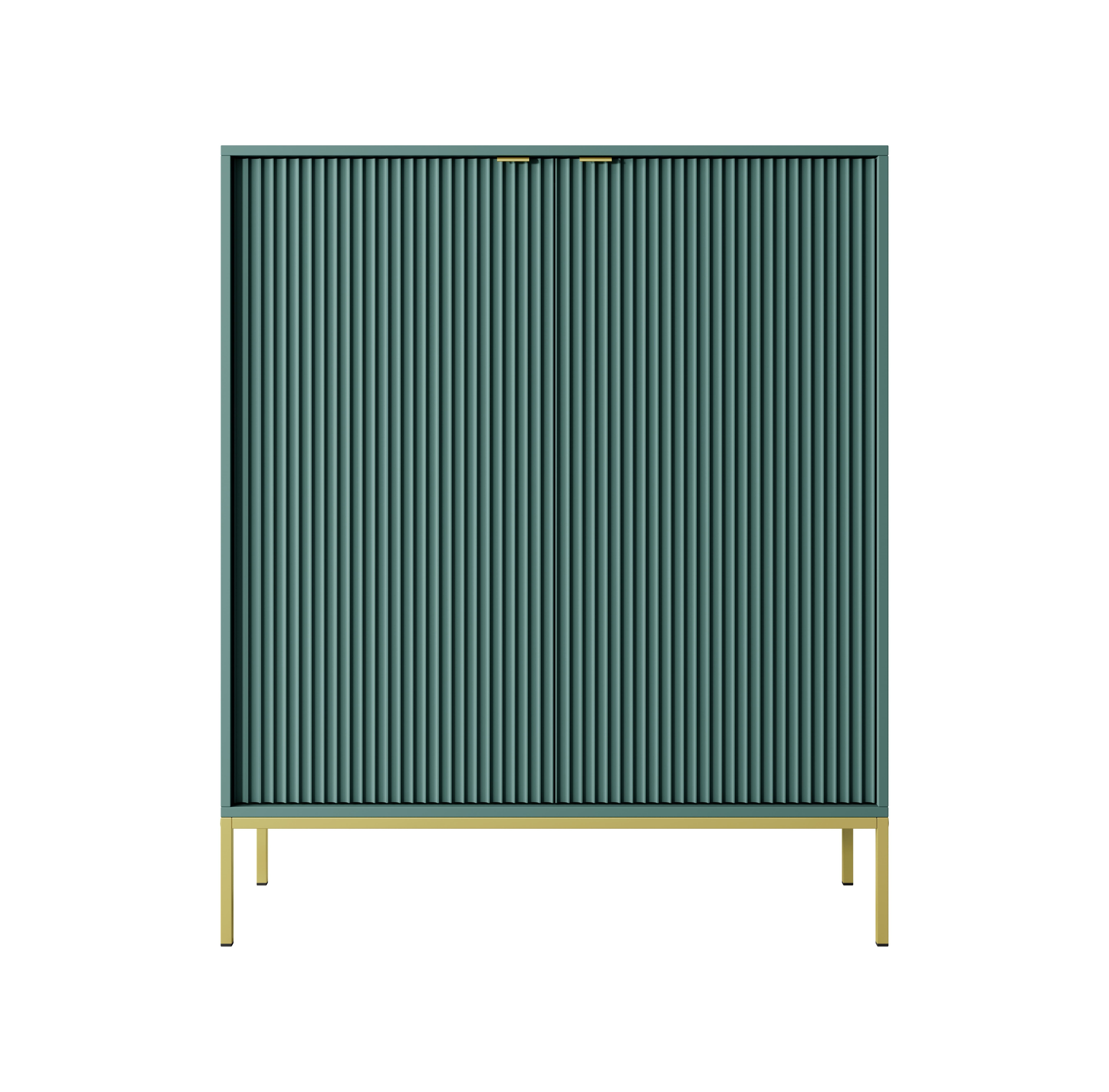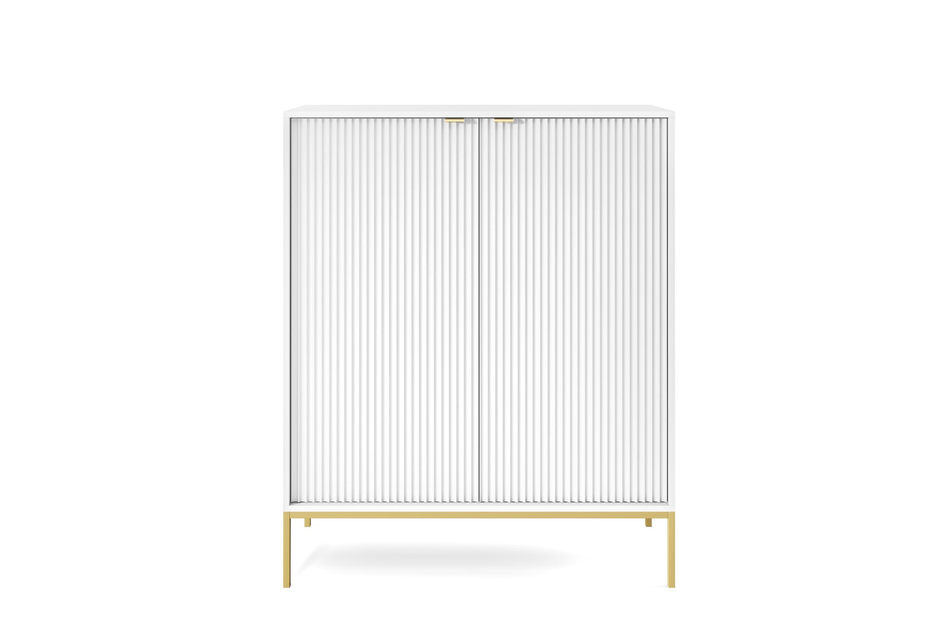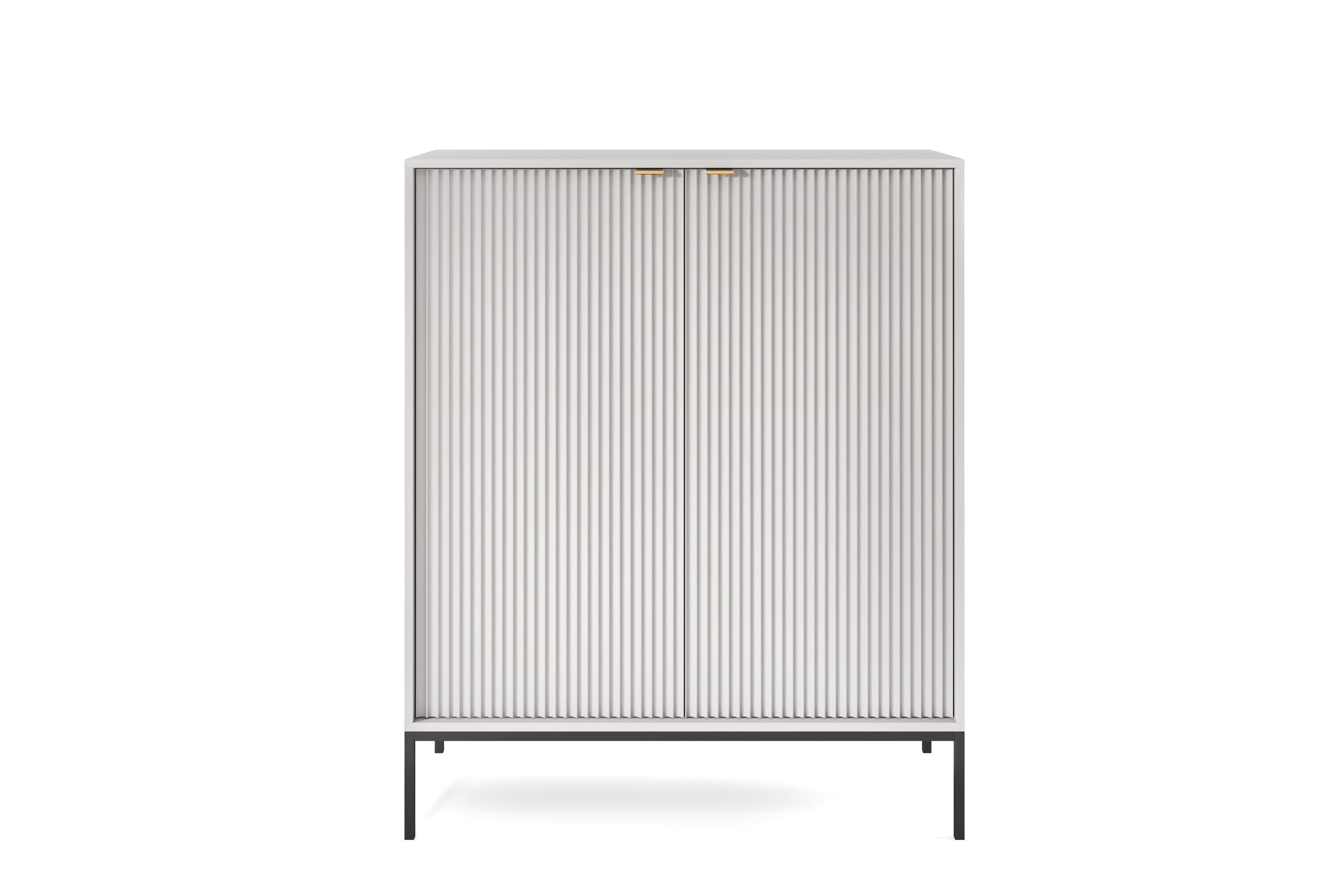 Die Kollektion Light vereint Modernität mit funktionalem Design. Die Möbelstücke zeichnen sich durch geometrische, statische Formen aus, die ihren minimalistischen Charakter unterstreichen. Das metallische Gestell verleiht der Kommode eine leichte, zeitgenössische Ausstrahlung, während die dekorativen Rillen auf den Fronten ein einzigartiges Designelement darstellen. Die zarten, goldfarbenen oder schwarzen Griffe betonen die Eleganz und Feinheit der Kollektion. Die Farbvielfalt ermöglicht es Ihnen, die Möbel individuell an Ihre ästhetischen Vorlieben anzupassen. Die Kommode LIGHT K104 ist damit die ideale Wahl für moderne Interieurs, die nicht nur funktional, sondern auch stilvoll sein sollen.