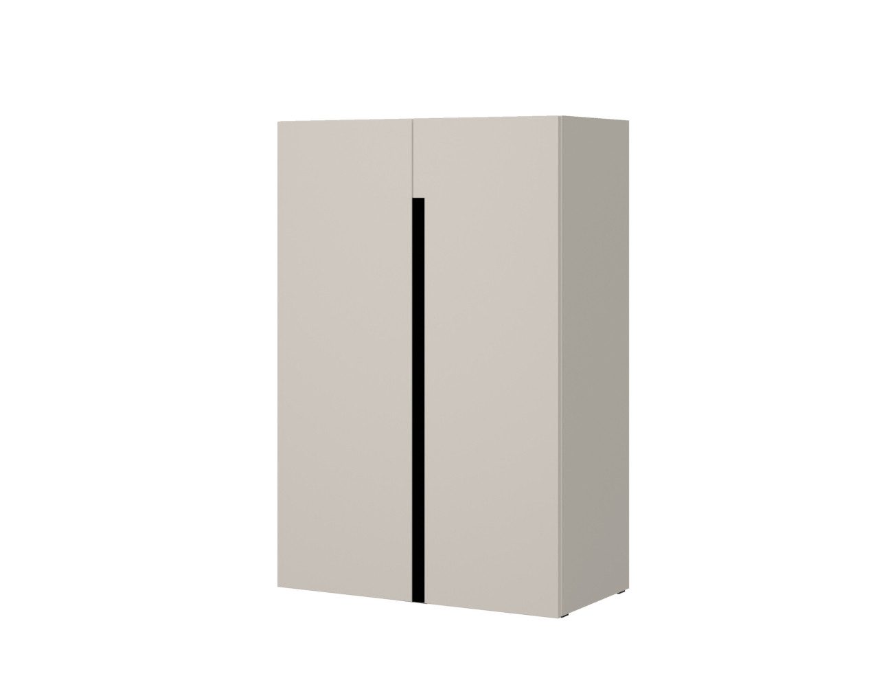 Wissenswertes | Praktischer Stauraum für Kleidung, Dokumente und Alltagsgegenstände Kompakte Maße für kleine Räume Moderne Optik mit schwarzen Metallgriffen Einfacher Zugriff durch zwei Türen Hochwertige Verarbeitung |