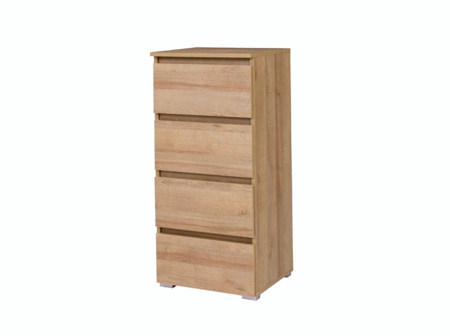 Die Kommode ist aus hochwertiger 16 mm starker Schichtstoffplatte gefertigt, die für ihre Widerstandsfähigkeit und Langlebigkeit bekannt ist. Der ABS-Kantenschutz sorgt dafür, dass die Möbelkanten stabil und widerstandsfähig gegenüber Abrieb und Stößen sind, was die Kommode auch bei intensivem Gebrauch robust und langlebig macht.