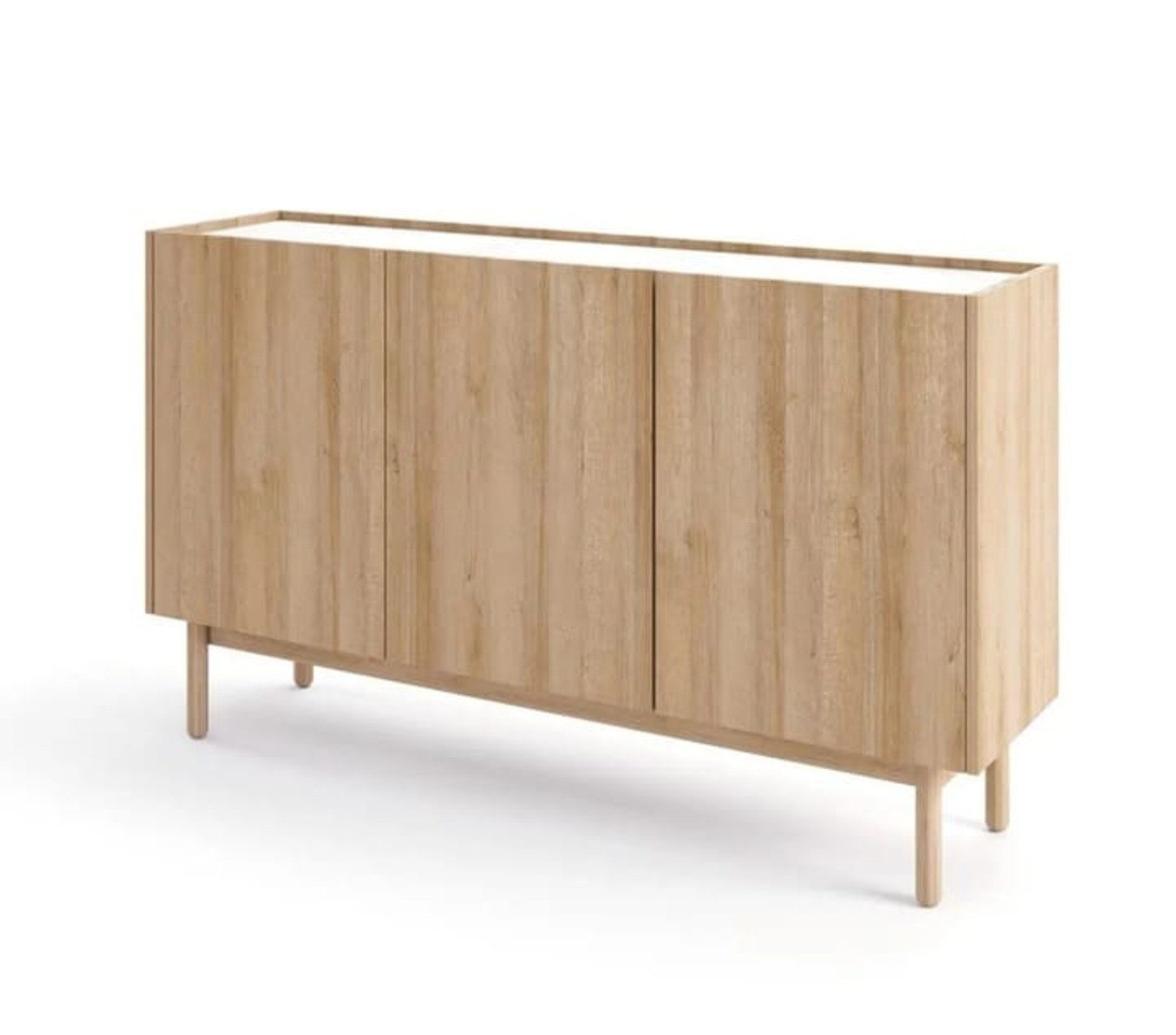 Die Kommode VINTAGE V2 144 zeichnet sich durch ihr unkonventionelles Aussehen und die sorgfältig ausgearbeiteten Details aus. Das Möbel hat eine abgesenkte Platte, die das Marmordekor freilegt, das neben seinen offensichtlichen ästhetischen Qualitäten die darauf abgestellten Gegenstände wirksam vor dem Herunterfallen schützt. Die Kommode hat hohe Massivholzbeine, die Stabilität garantieren und die Reinigung erleichtern. Die Farbgestaltung in dem warmen Farbton Eiche riviera bringt eine gemütliche Atmosphäre in den Raum.