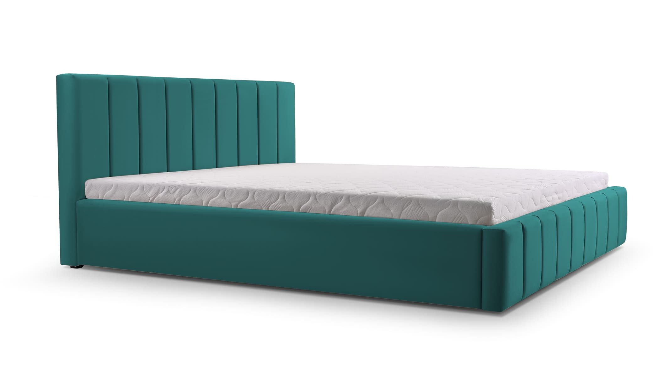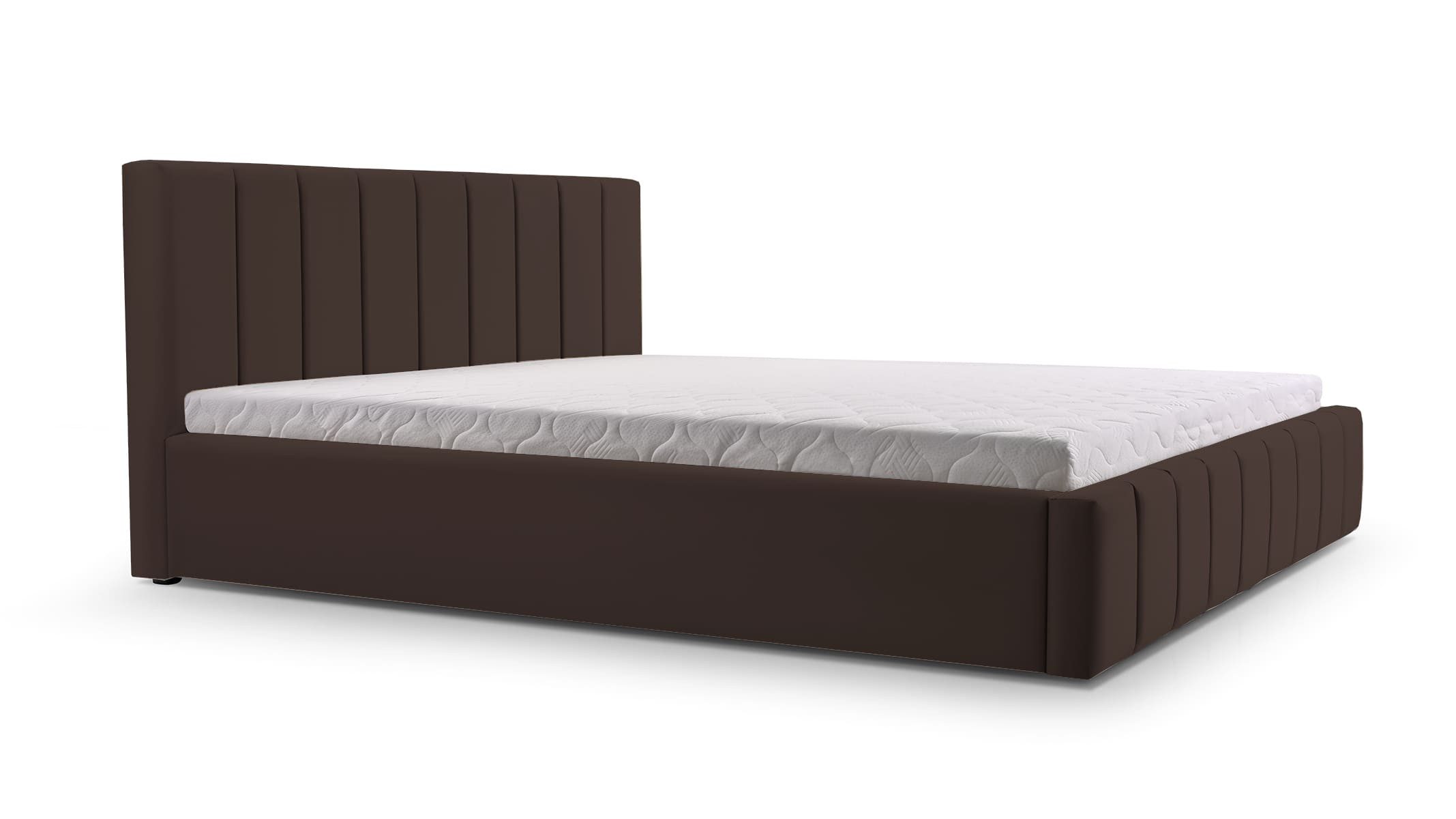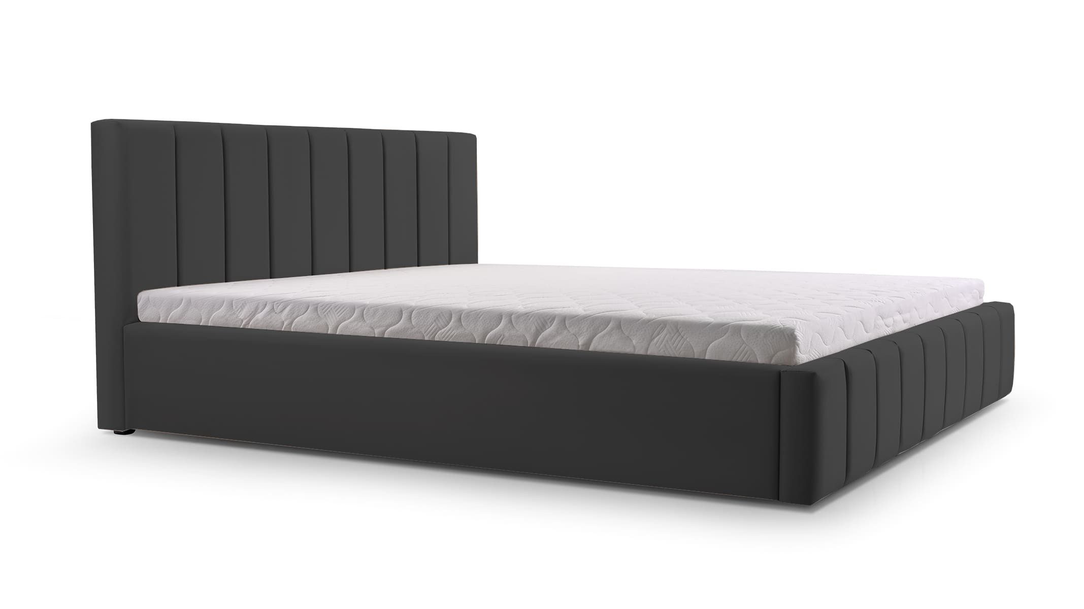 Dieses Bett beeindruckt durch sein minimalistisches Design, das sowohl Eleganz als auch Schlichtheit betont. Es verfügt über einen robusten Rahmen, der für Stabilität und Langlebigkeit sorgt. Der hochwertige Trinity-Stoff, mit dem das Bett bezogen ist, fühlt sich angenehm weich an und bietet dank seiner hydrophoben Beschichtung zusätzlichen Schutz vor Schmutz und Wasser. Ein praktischer Federmechanismus erleichtert den Zugriff auf den geräumigen Stauraum unter der Liegefläche. Die vielen verschiedenen Farben ermöglichen eine mühelose Integration in verschiedene Schlafzimmerstile, wodurch das Bett zum stilvollen und funktionalen Mittelpunkt des Raumes wird.