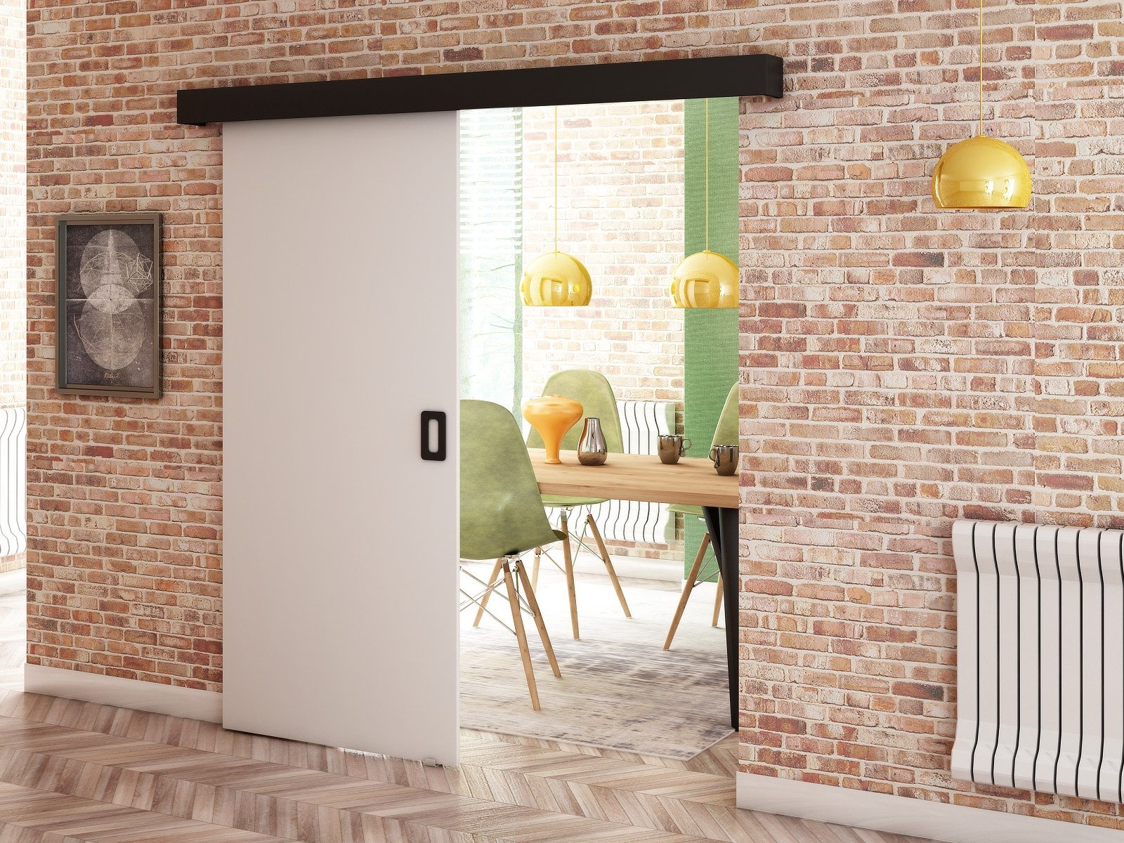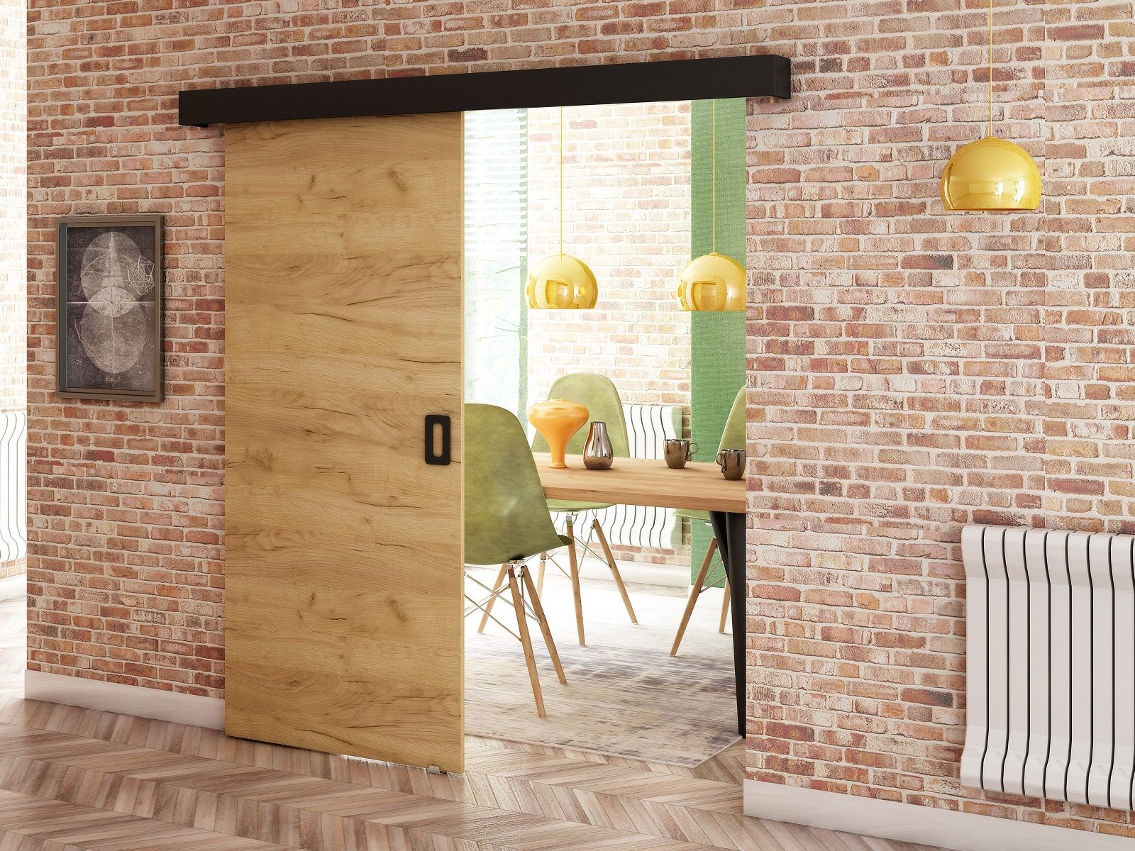 MAY-Schiebetür aus 16 mm starker laminierter Möbelplatte, Kanten sorgfältig mit haltbarem und beschädigungsbeständigem PVC-Furnier verarbeitet, Griff aus haltbarem Kunststoff.