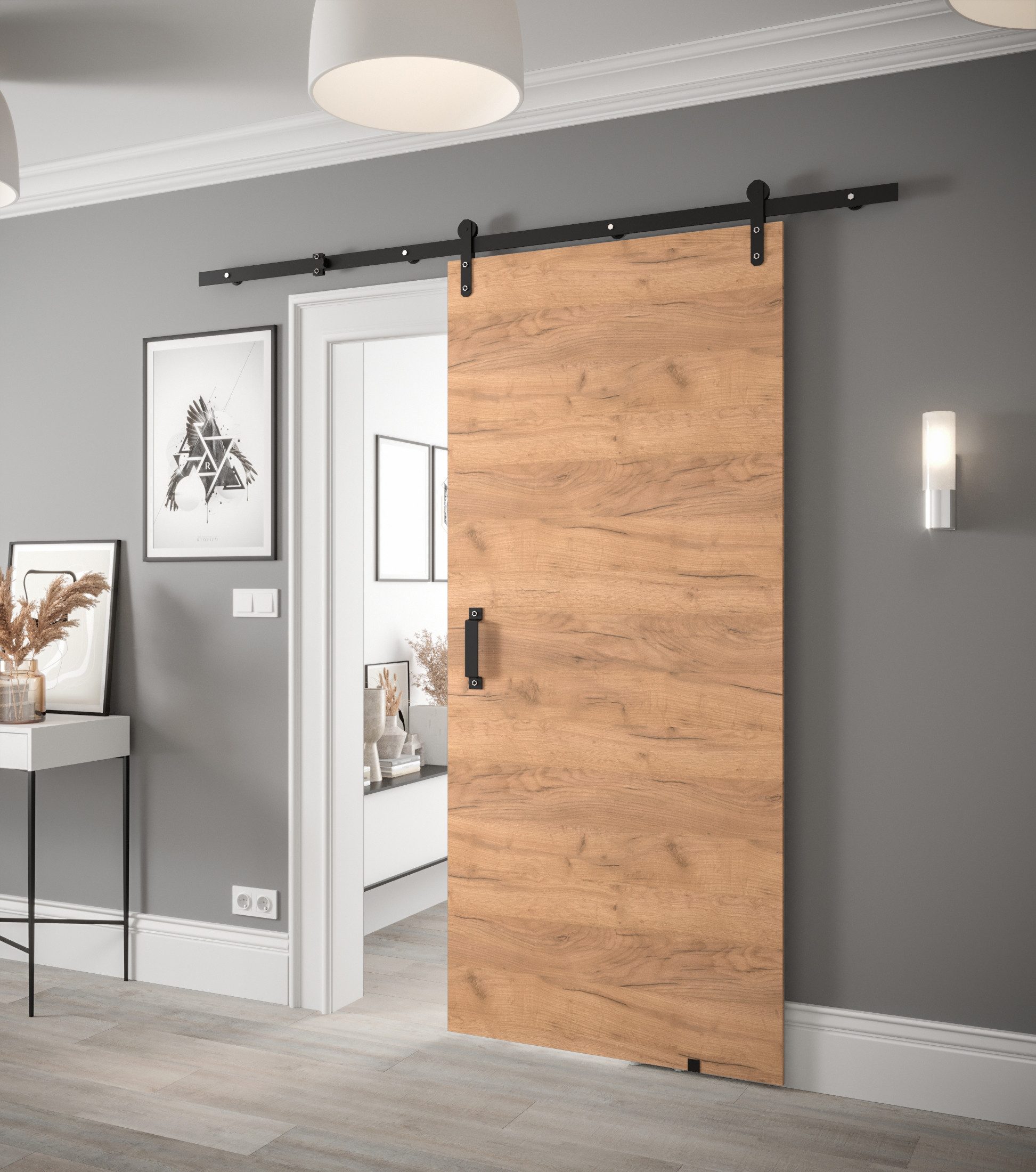 Die Schiebetür Parker ist die perfekte Lösung für alle, die Ästhetik und Komfort schätzen. Dank des platzsparenden Schiebesystems ermöglicht sie eine optimale Raumnutzung und verleiht jedem Raum ein modernes Ambiente. Ihr minimalistisches Design in Kombination mit hochwertigen Materialien fügt sich harmonisch in moderne sowie klassische Wohnstile ein. Ideal für Wohnungen, Büros oder Lofts – eine langlebige und stilvolle Wahl für Ihr Zuhause.