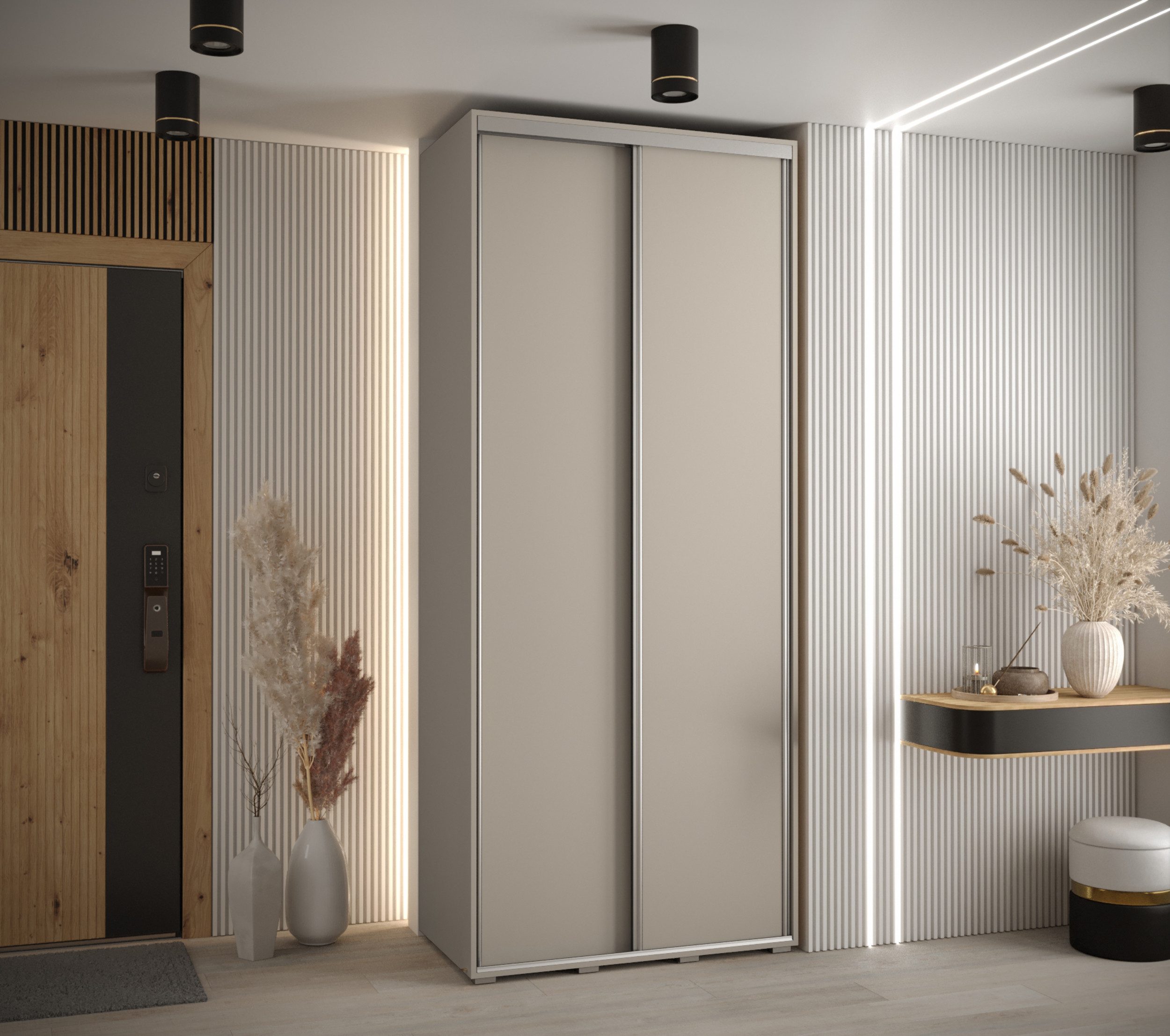 Der Schrank Alokazja ist die perfekte Wahl für alle, die modernes Design und praktische Funktionen suchen. Mit seiner soliden Konstruktion und den eleganten, schwenkbaren Türen fügt sich dieser Schrank mühelos in jedes Schlafzimmer, Ankleidezimmer oder Wohnzimmer ein. Die Möglichkeit, den Schrank in verschiedenen Breiten zu wählen (von 100 cm bis 200 cm), sorgt für maximale Flexibilität bei der Raumgestaltung.