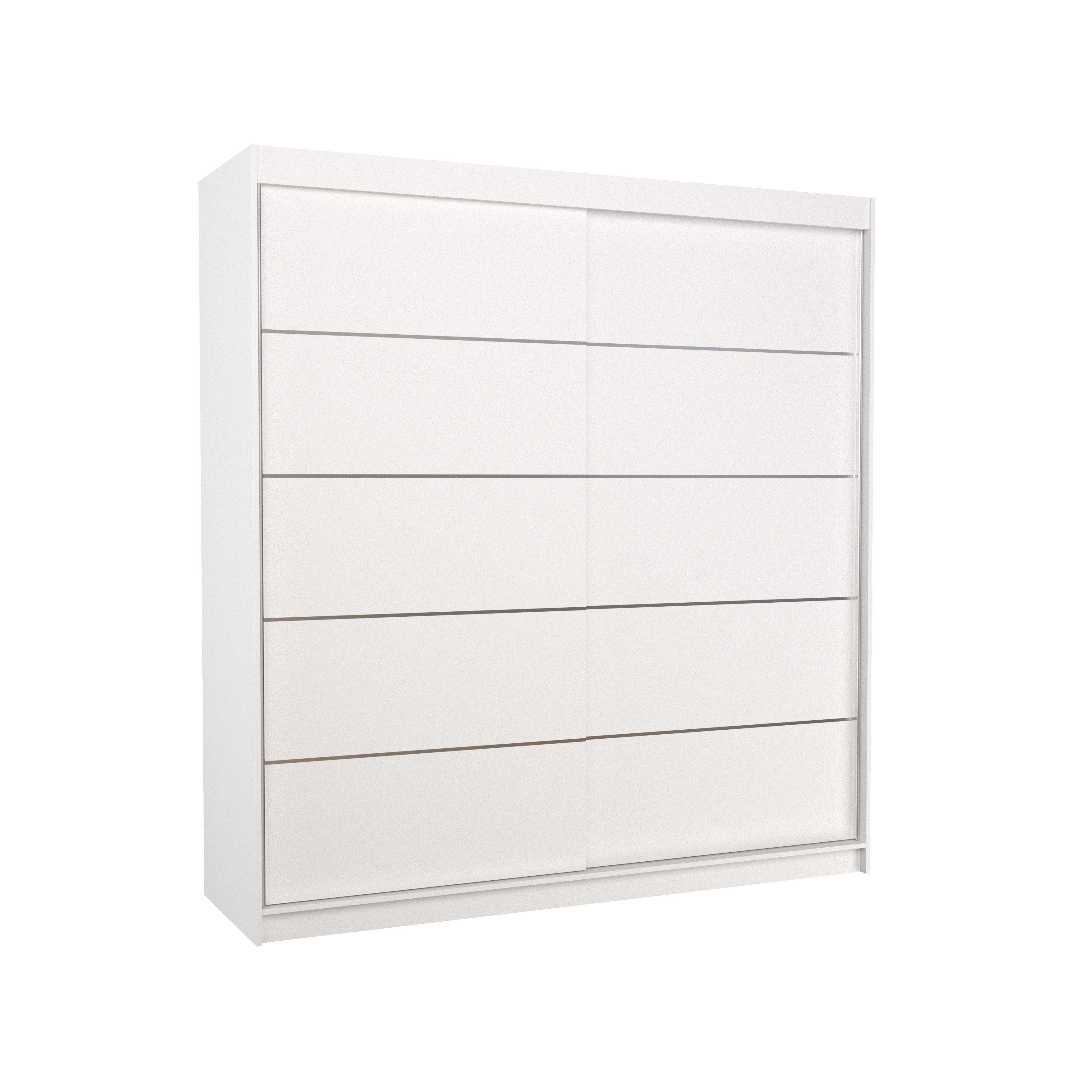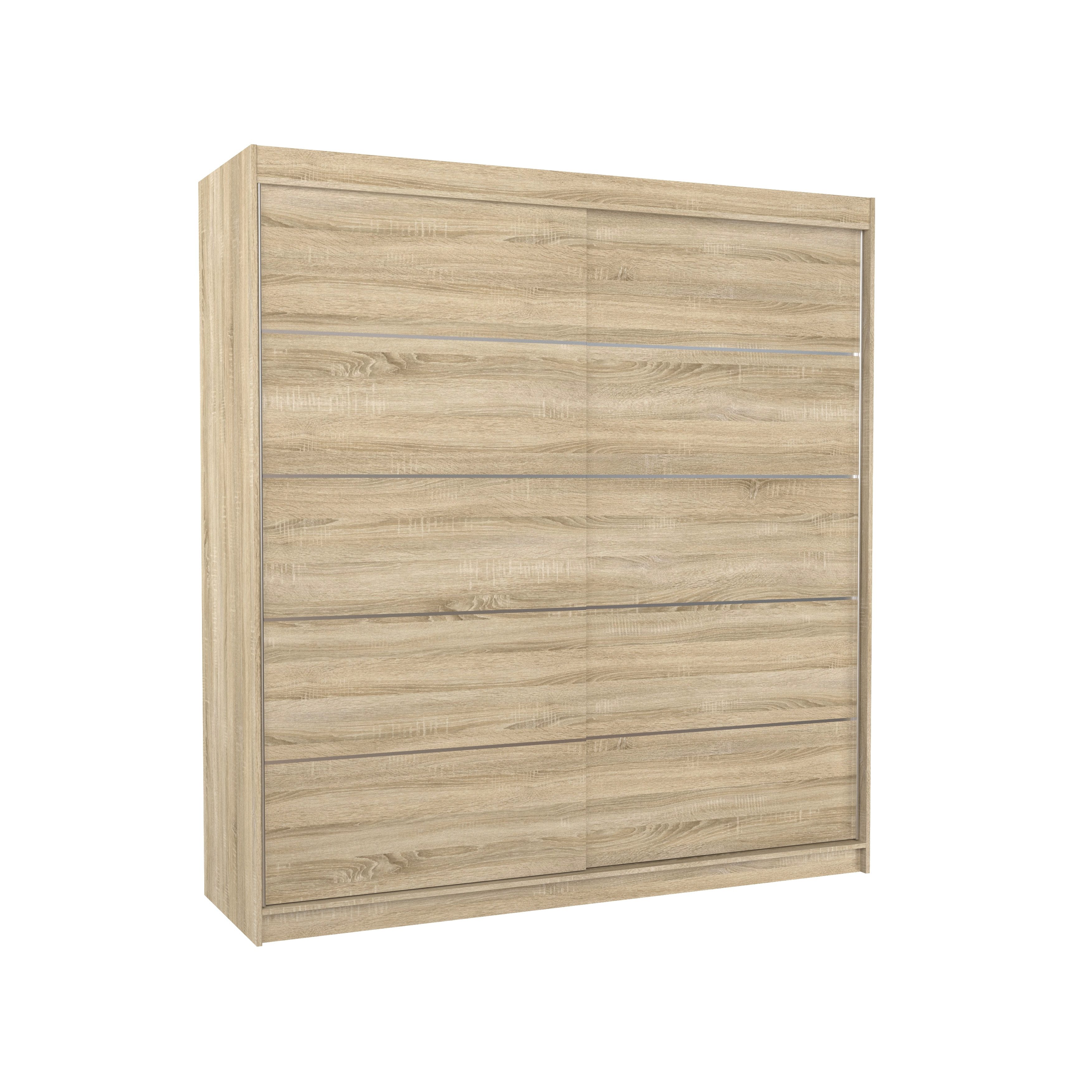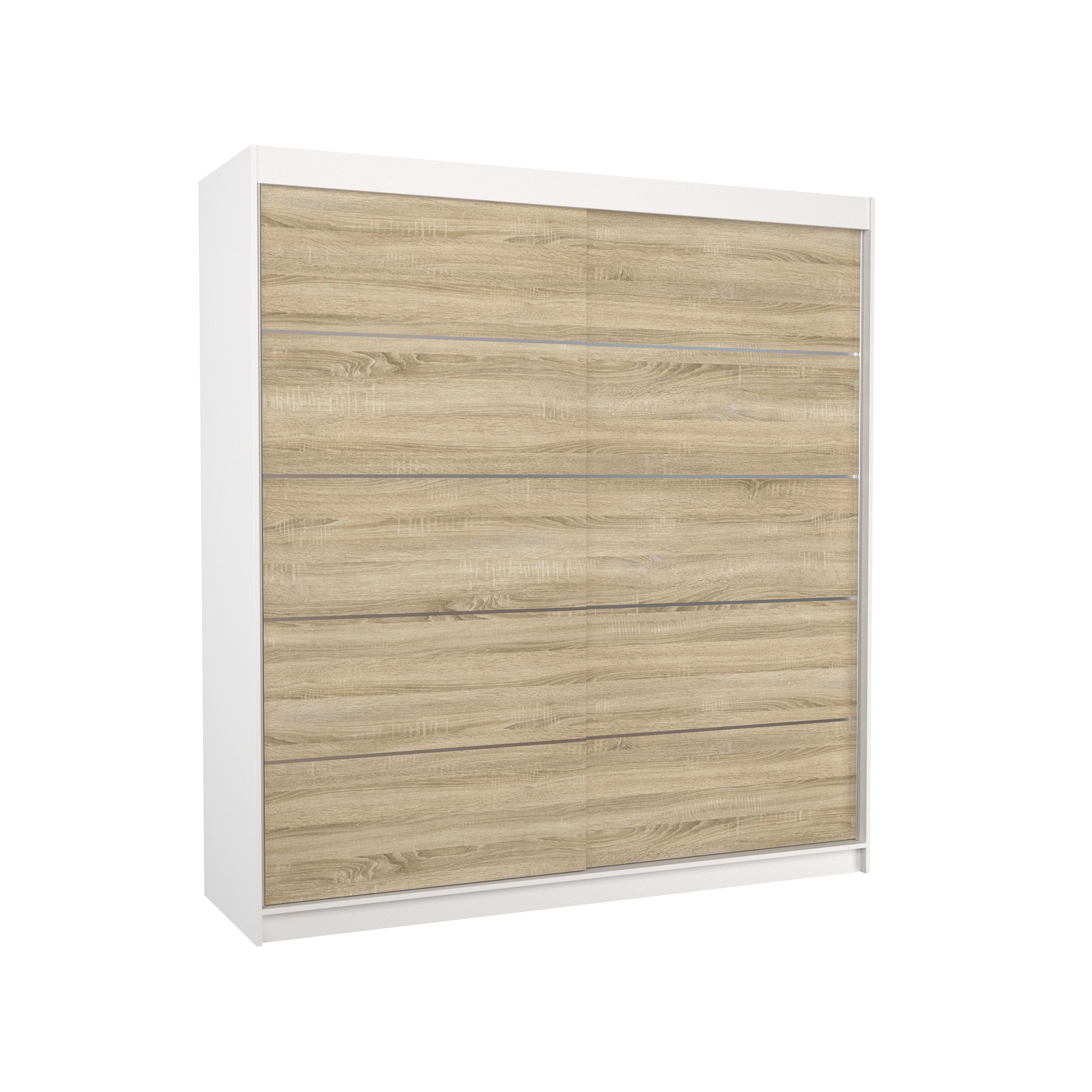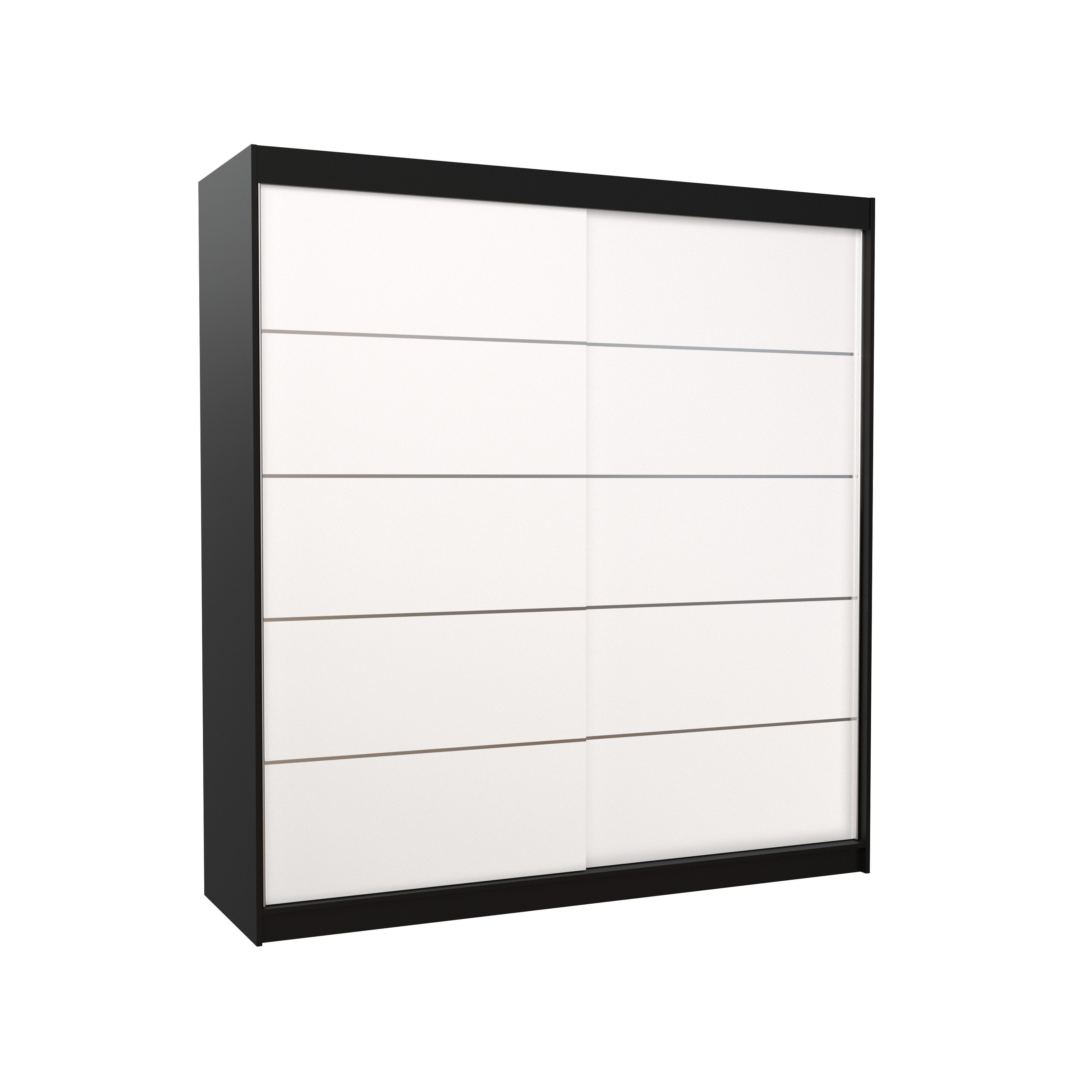Der Schiebetürenschrank Arvigo 200 ist die perfekte Lösung, um Ihren Raum stilvoll und funktional zu gestalten. Ausgestattet mit geräumigen Regalen und einer Kleiderstange bietet er ausreichend Platz für Kleidung, Jacken, Anzüge oder Hemden.