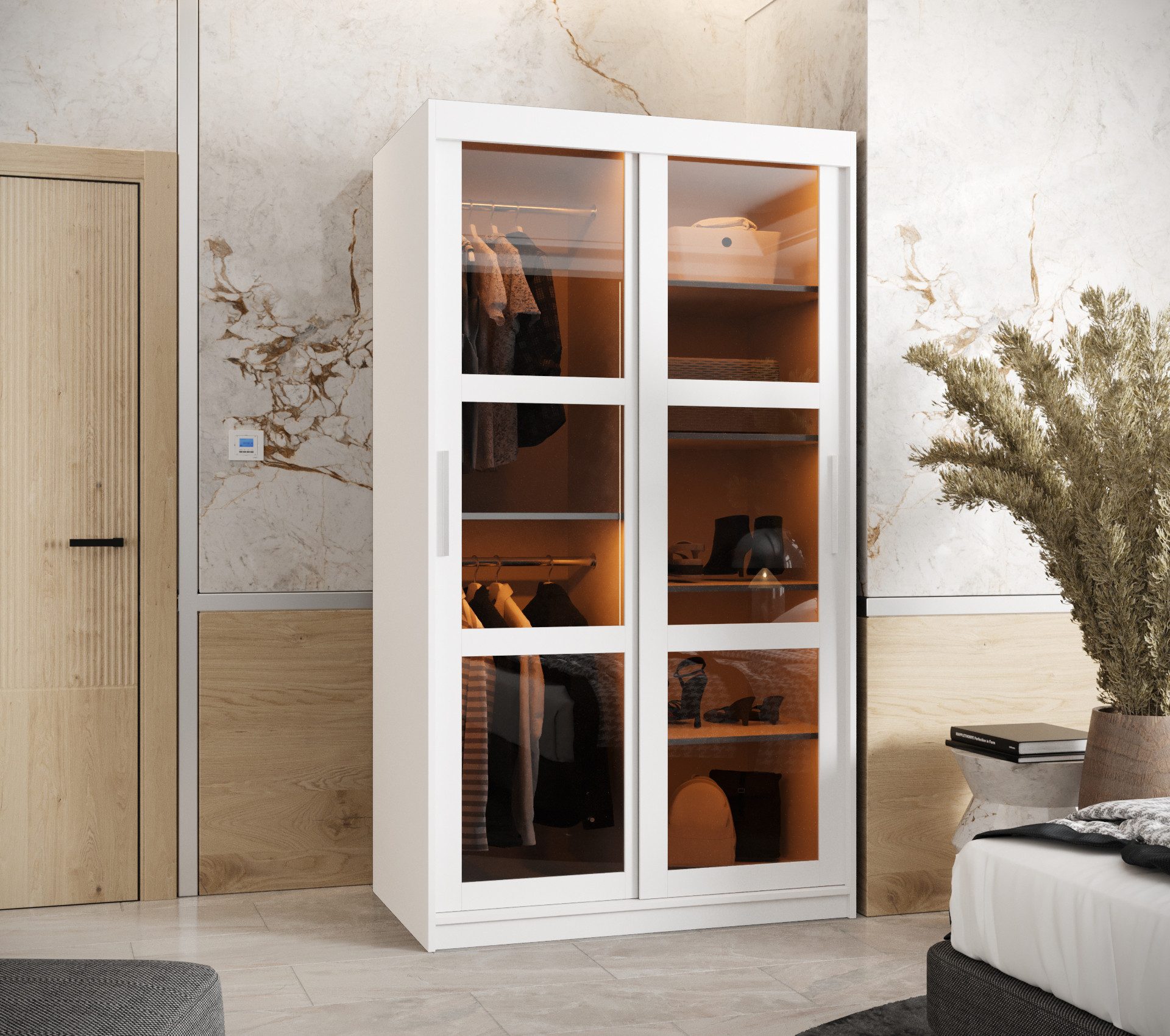 Der Schrank DEMO ist die perfekte Kombination aus Eleganz und Funktionalität. Er eignet sich ideal für das Schlafzimmer, die Garderobe oder den Flur und sorgt für höchsten Komfort und modernes Design.