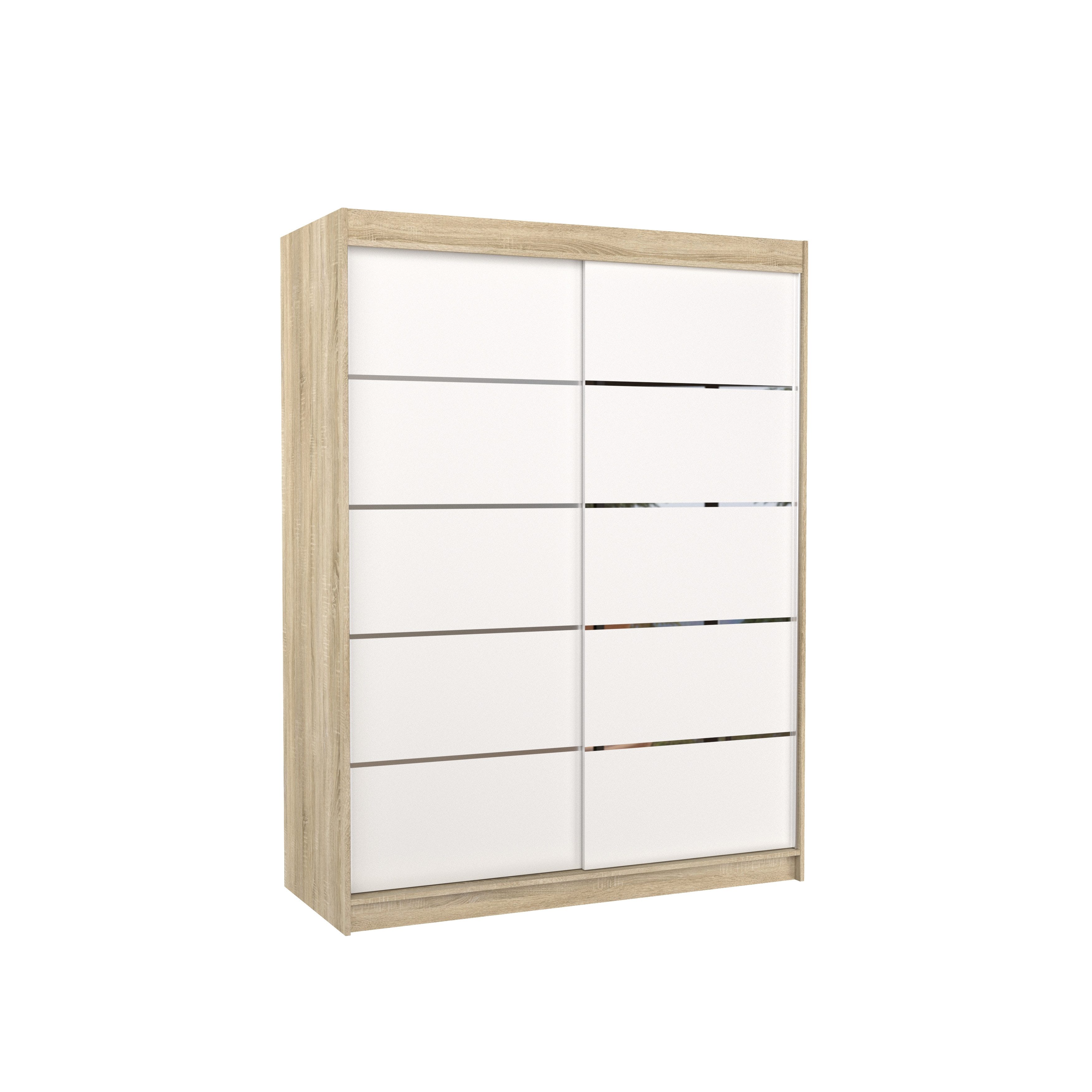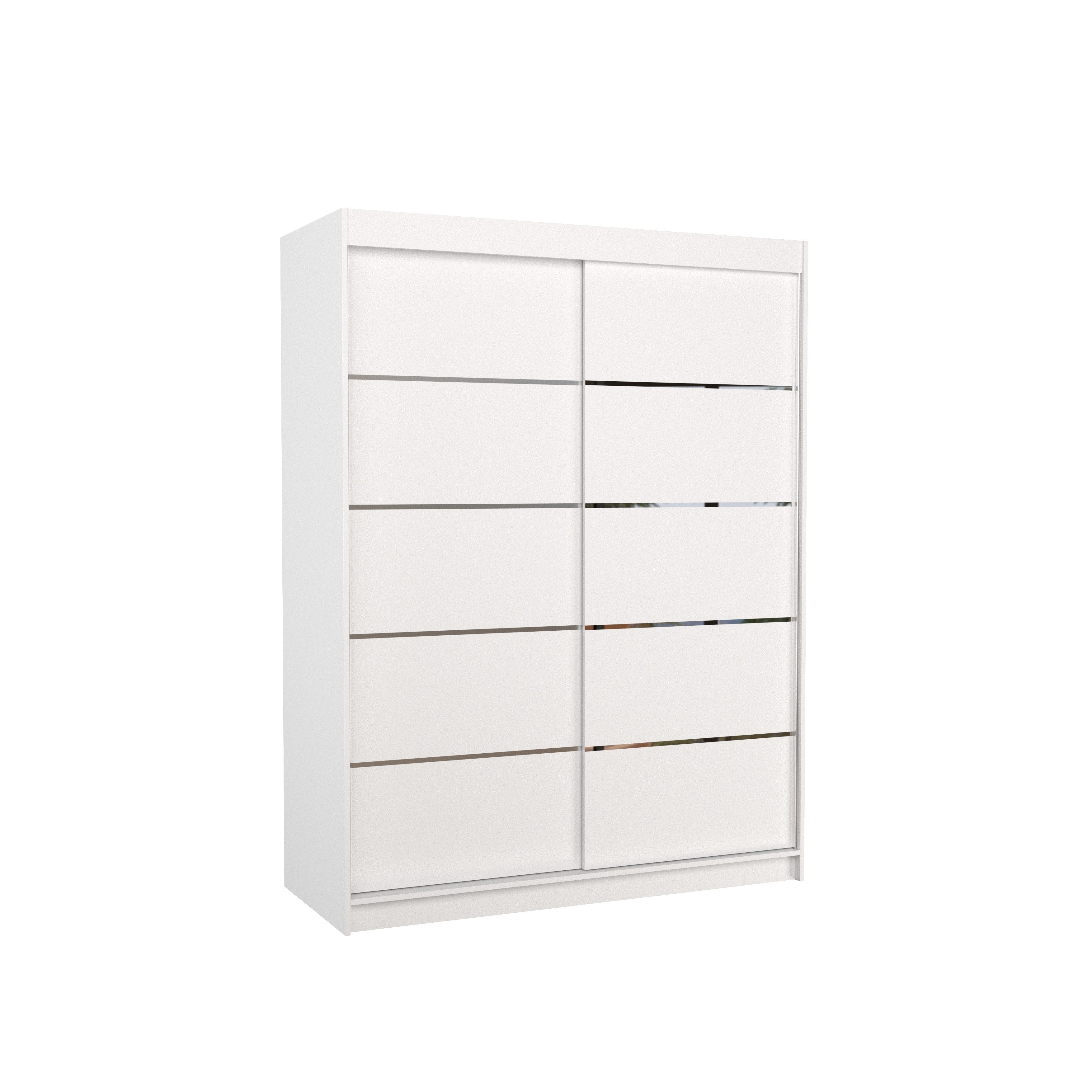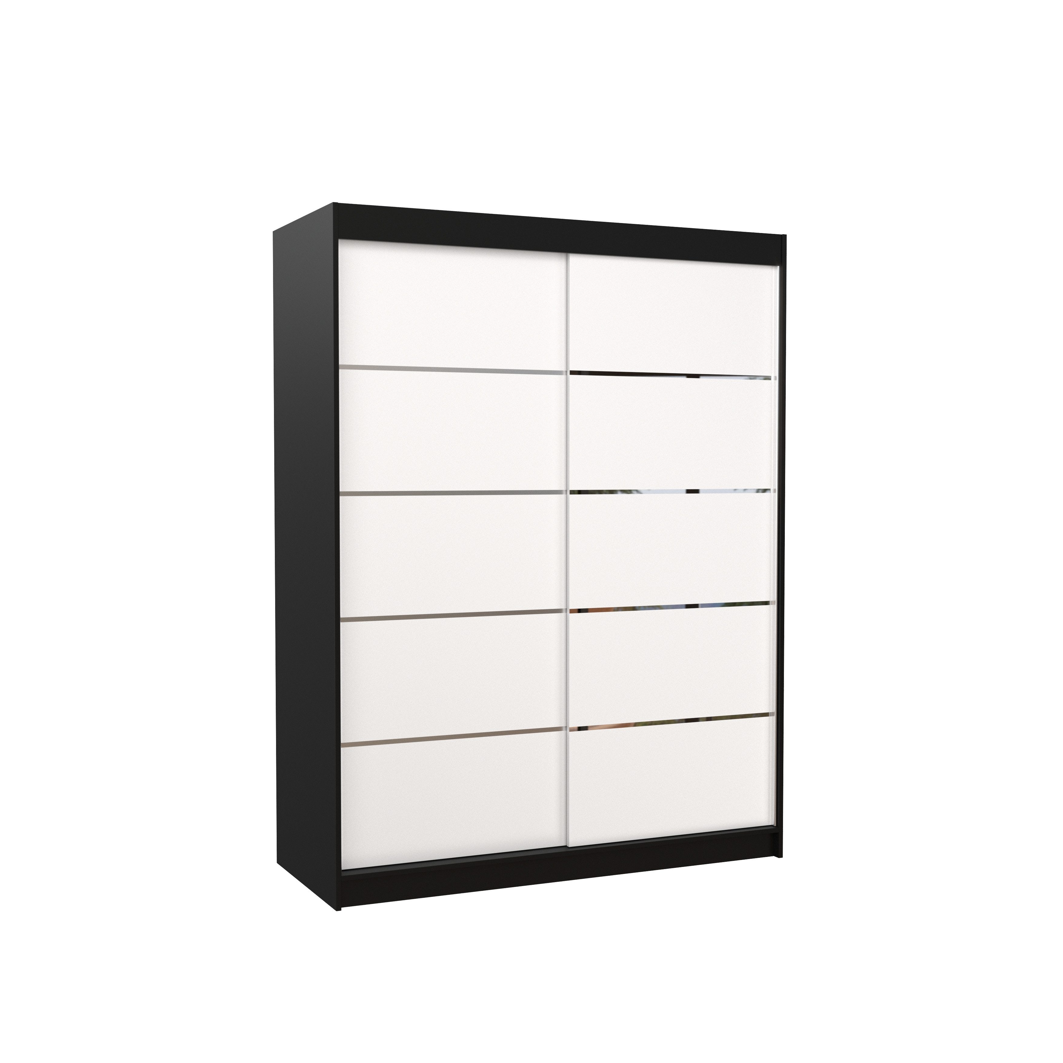 Der Schiebetürenschrank VELANO 150 kombiniert modernes Design mit durchdachter Funktionalität und bietet Ihnen eine elegante Lösung zur optimalen Raumnutzung. Die klaren Linien und silbernen Dekorstreifen auf der Front verleihen dem Schrank eine zeitlose und zugleich moderne Optik, die sich harmonisch in verschiedenste Wohnstile einfügt.