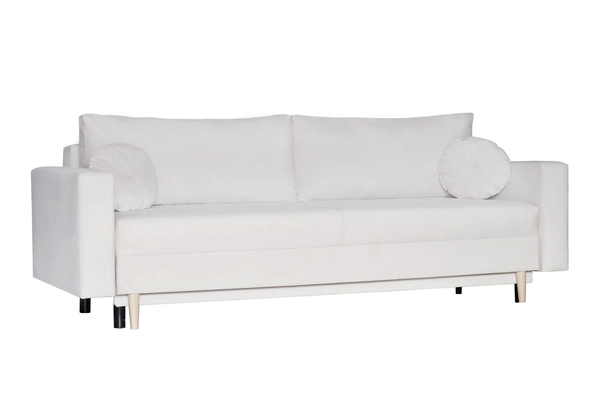 Das stilvolle und funktionale Schlafsofa AMARO besticht durch seine moderne Ästhetik und hohen Komfort. Mit seiner gepolsterten Rückseite kann es frei im Raum aufgestellt werden, ohne Kompromisse beim Design einzugehen. Dank der DL-Ausklappfunktion lässt sich das Sofa mühelos in ein bequemes Bett umwandeln. Die dekorativen Nähte an den Kissen und Armlehnen verleihen dem Sofa eine elegante Note, während der integrierte Bettkasten zusätzlichen Stauraum bietet. Perfekt für moderne Wohnräume, die Flexibilität und Stil erfordern.