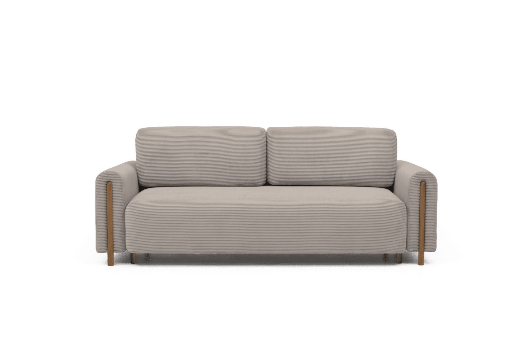Die hohen Holzbeine verleihen dem Sofa seine Leichtigkeit und machen es zu einer perfekten Ergänzung für verschiedene Einrichtungsstile.