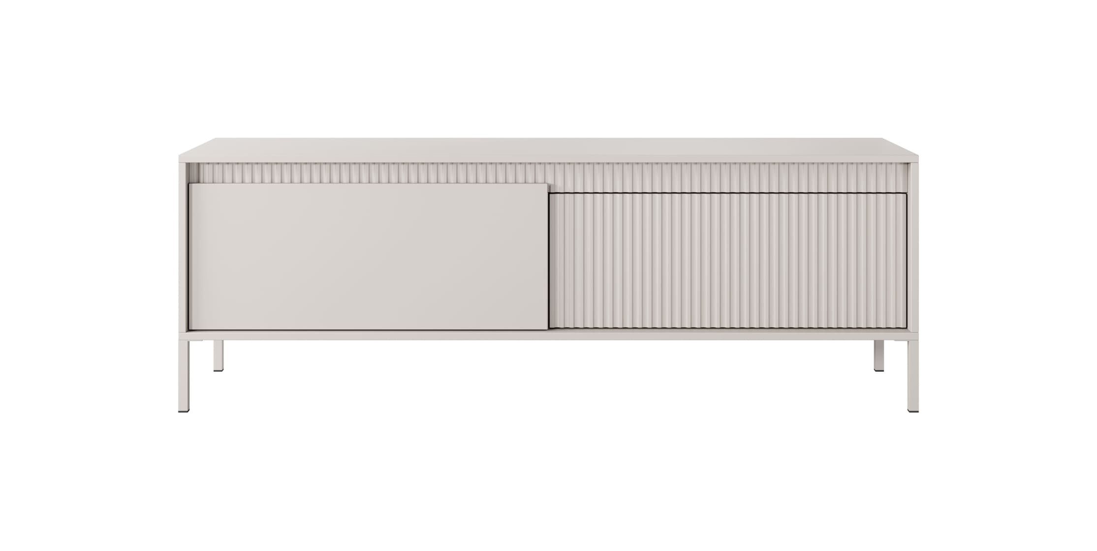 Die Rifaro-Kollektion, erhältlich in Schwarz und Beige, zeichnet sich durch ein modernes, minimalistisches Design mit einem eleganten Akzent aus. Die Verwendung von geriffelten Fronten in Kombination mit glatten, nach vorne versetzten Elementen schafft ein harmonisches Spiel von Texturen und Tiefe. Schlanke Metallbeine verleihen den Möbeln Leichtigkeit, während das grifflose Öffnen ihre klare, moderne Form betont. Schwarze Möbel bringen Eleganz und Kontrast in den Raum, während die beige Kollektion Helligkeit und Subtilität hinzufügt und so ideale Sets für zeitgemäße, stilvolle Arrangements schafft.