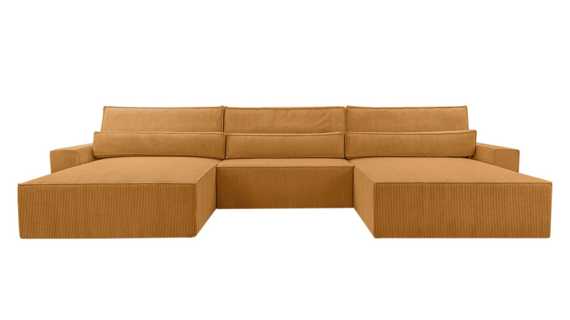 Set-Info | Ecksofa U-Form aus Cordstoff mit Schlaffunktion und Bettkasten |