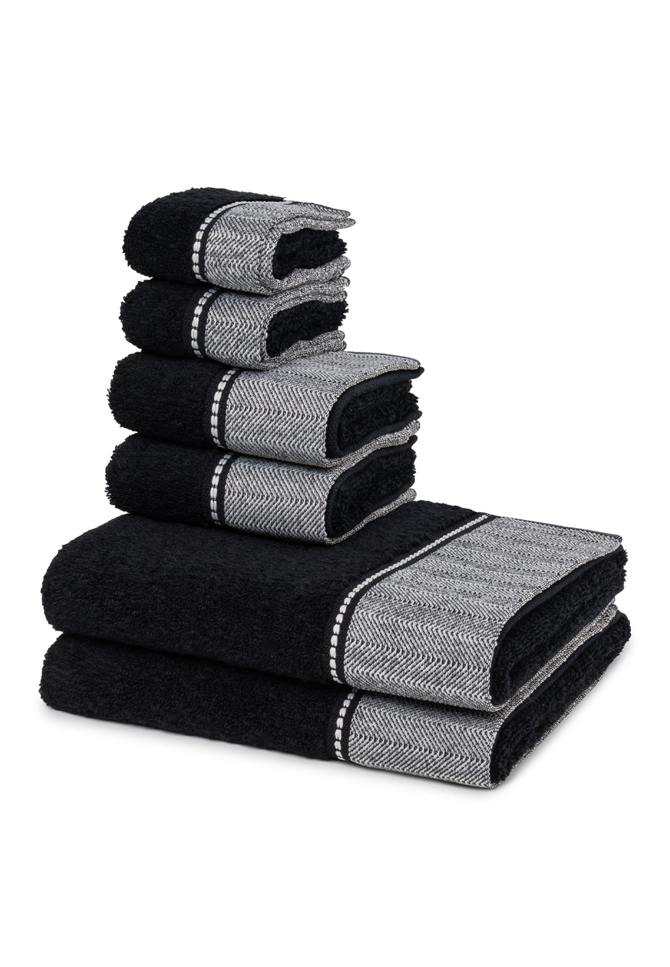 Die Serie Brooklyn lässt Erinnerungen an die Dandy-Ära wach werden und ist inspiriert von den Mustern traditioneller Anzugstoffe – Glencheck und Fischgrat. In Kombination mit dem gekräuselten Bouclé-Garn mit kleinen Knötchen und Schlingen, wird daraus eine zeitlose und elegante Kollektion, die zugleich den aktuellen Zeitgeist reflektiert. Durch den modernen Materialmix aus Baumwolle, Viskose und Leinen ist die Serie hautsympathisch, strapazierfähig, weich, pflegeleicht und zart glänzend. Das hochwertige Material ist zudem besonders langlebig. Set besteht aus: 2 X Handtuch (50 X 100cm), 2 X Gästetuch (30 X 50cm), 2 X Seiftuch (30 X 30cm)