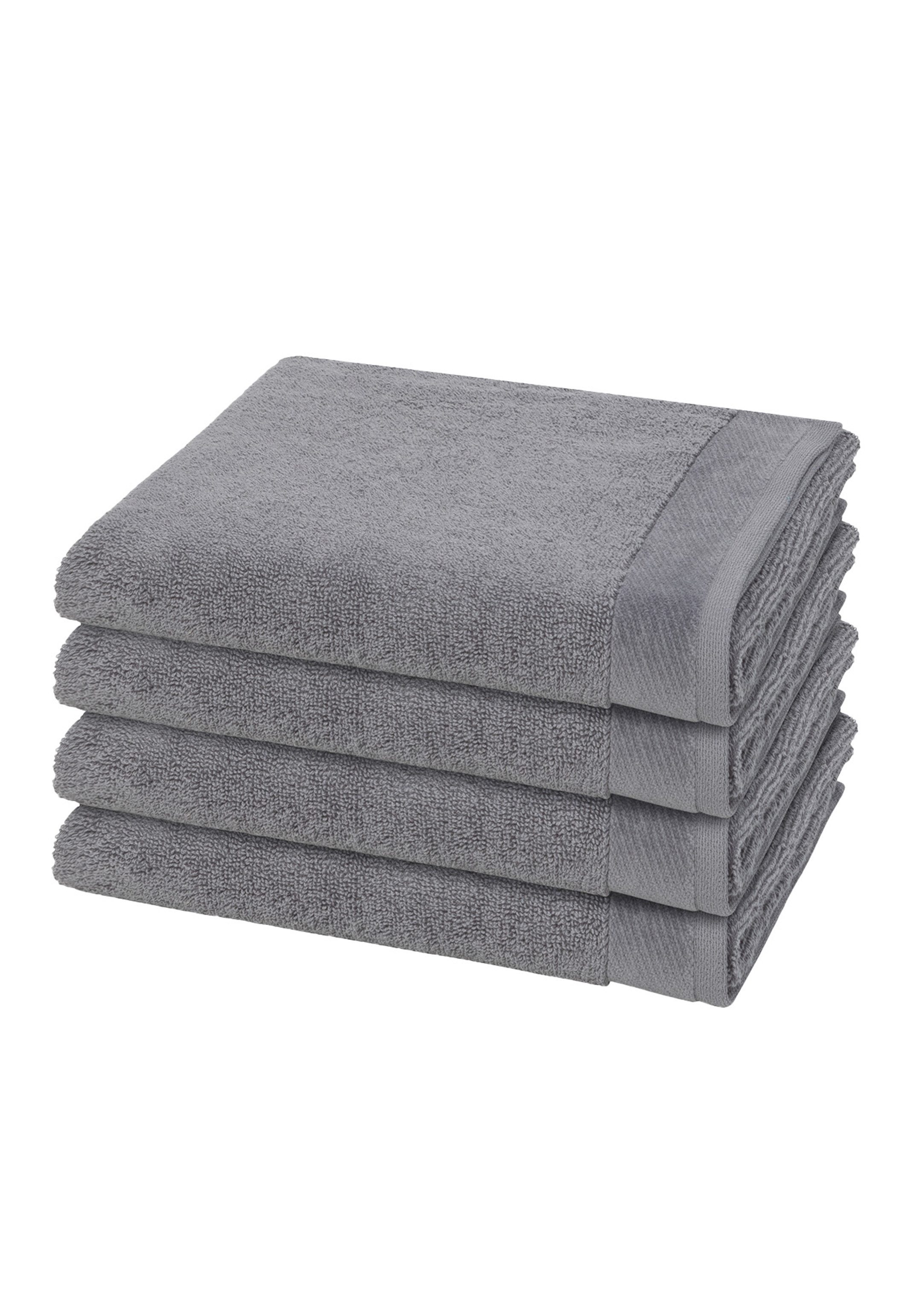 Purer Luxus aus 100% Premium-Baumwolle. Diese Handtücher sind mit ihrer flauschigen Optik und Haptik sowie einer breiten, weichen Chenillebordüre ein echter Blickfang im Bad. Die dezente Farbpalette lädt zum Kombinieren ein. Extraweicher Griff, hoher Flor und hochwertiger Kordelaufhänger machen sie zu einem Must-have für Ihr Zuhause. Set besteht aus: 4 X Handtuch (50 X 100cm)