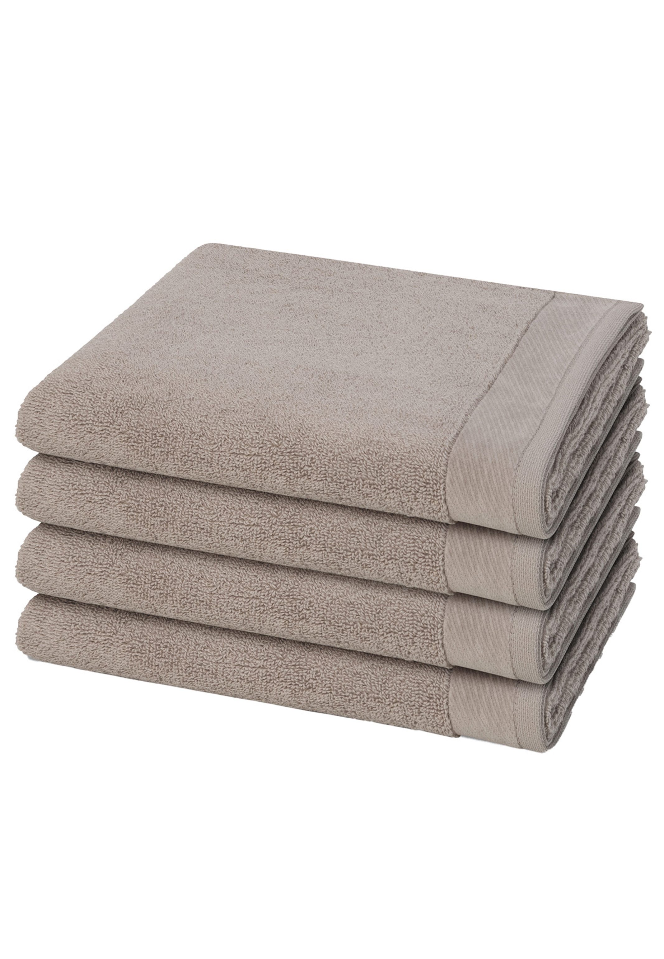 Purer Luxus aus 100% Premium-Baumwolle. Diese Handtücher sind mit ihrer flauschigen Optik und Haptik sowie einer breiten, weichen Chenillebordüre ein echter Blickfang im Bad. Die dezente Farbpalette lädt zum Kombinieren ein. Extraweicher Griff, hoher Flor und hochwertiger Kordelaufhänger machen sie zu einem Must-have für Ihr Zuhause. Set besteht aus: 4 X Handtuch (50 X 100cm)