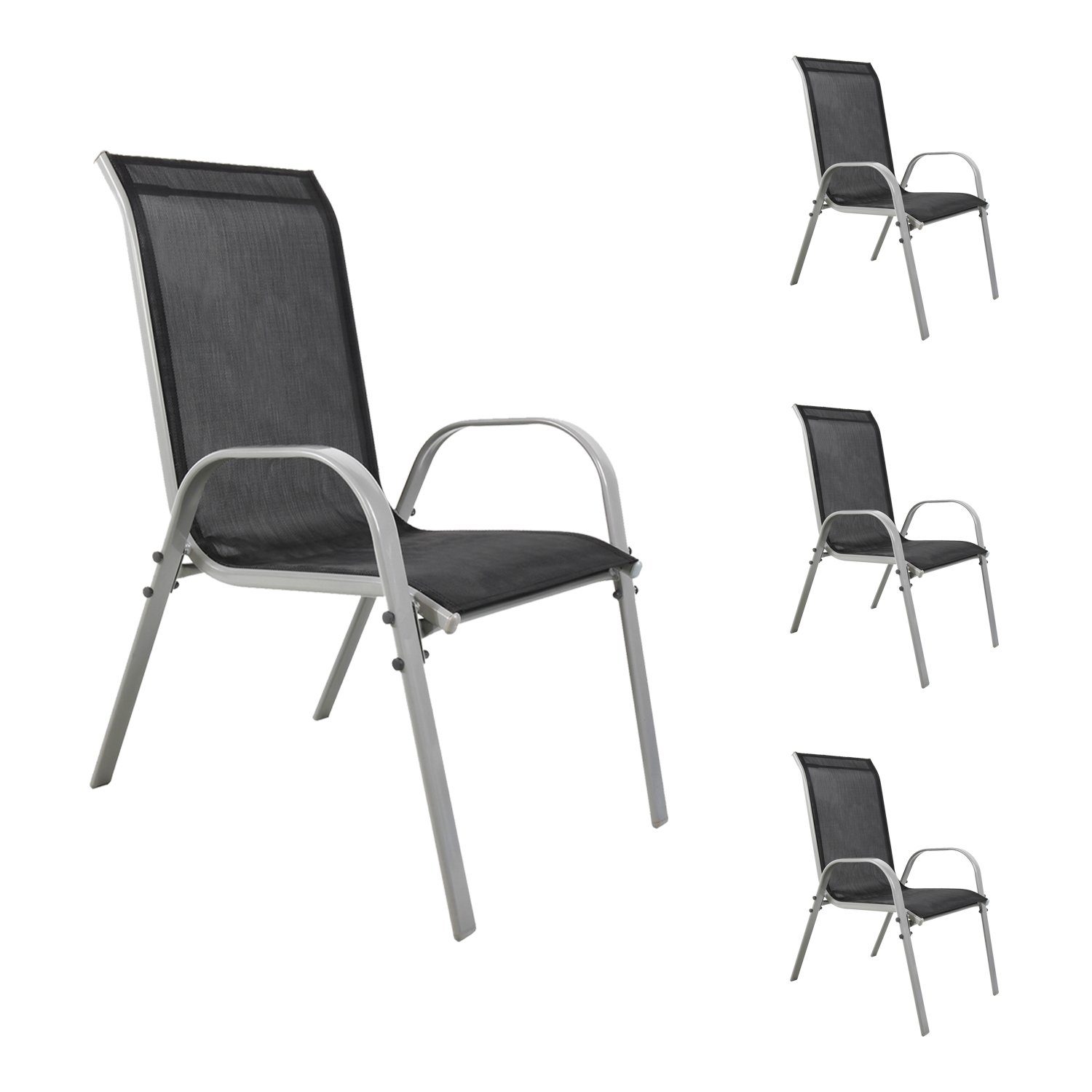 Mojawo Armlehnstuhl 4xOutdoorstuhl Gartenstuhl Stapelstuhl Metall Silber Textilen Schwarz