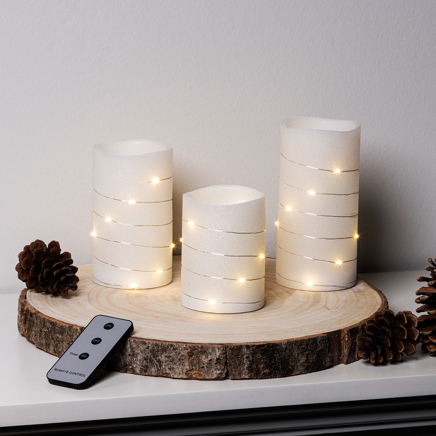 Bestellen Sie jetzt Ihr 3tlg Set LED-Echtwachs Kerzen-Set und verwandeln Sie Ihr Zuhause in eine Oase der Gemütlichkeit!