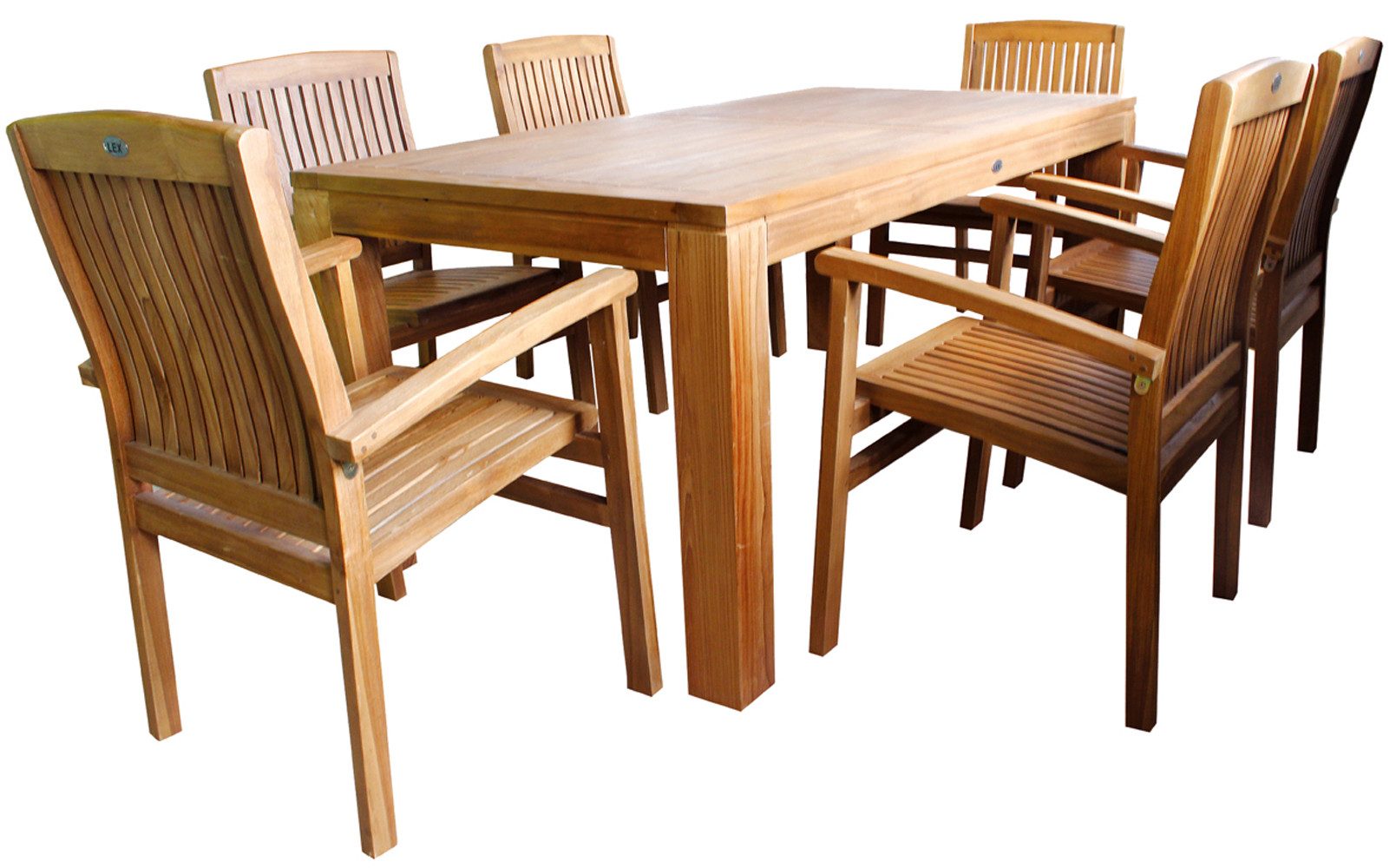 Teak Garnitur 180 x 90 x 75cm + 6 Stapelsessel
