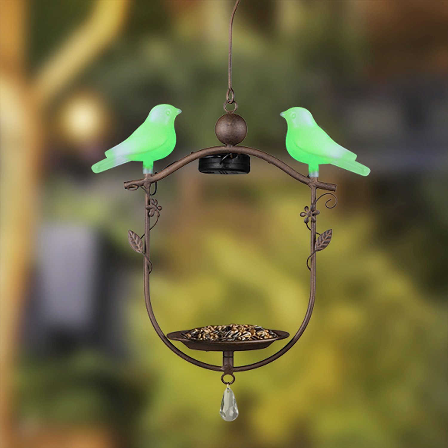 - Solar LED Futterstation mit 2 Vögeln für den Außenbereich zum Hängen