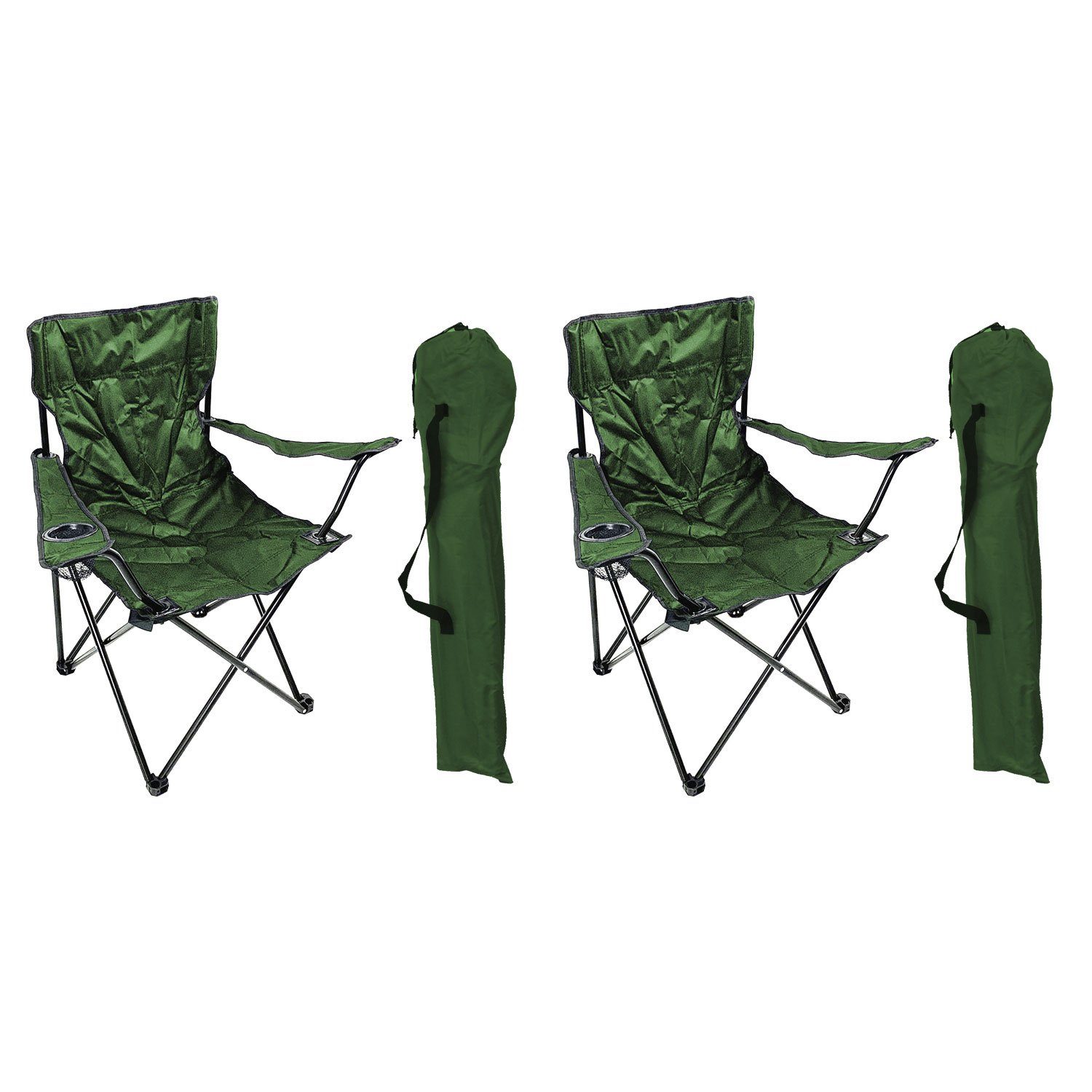 2er Set Anglersessel Grün – Klappbarer Campingstuhl mit Tragetasche & Getränkehalter