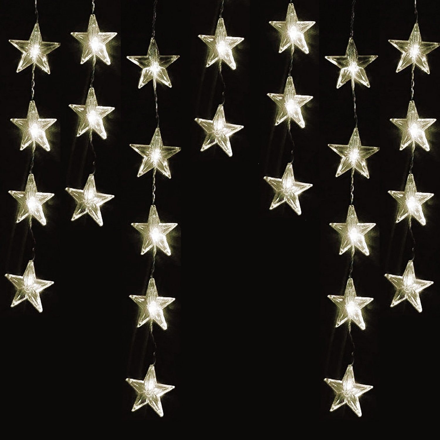 Bringen Sie festliche Abwechslung in Ihr Zuhause und schaffen Sie eine gemütliche Atmosphäre mit dem 40er LED-Sternenvorhang. Ob als Weihnachtsbeleuchtung für Fenster, dekoratives Highlight an Wänden oder stimmungsvolle Beleuchtung von Bäumen – dieser LED-Vorhang setzt warme und einladende Lichtakzente. Die Kombination aus klaren, transparenten Sternen und warmweißen LEDs macht Ihre Weihnachtsdeko zu etwas ganz Besonderem und sorgt für ein harmonisches Lichtspiel in Ihrem Zuhause.