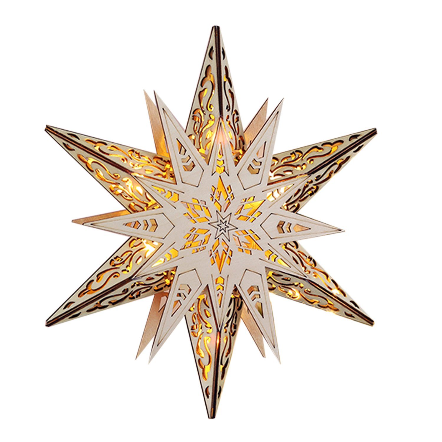Dieser beleuchtete Holz-Weihnachtsstern bringt eine stimmungsvolle Beleuchtung an jedes Fenster und gehört zu jeder Advents-Dekoration.