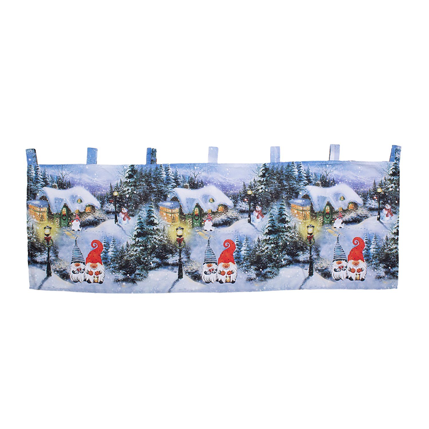 LED Scheibengardine / Fenstergardine bedruckt mit Weihnachts - Motiv - Wichtel/Dorf
