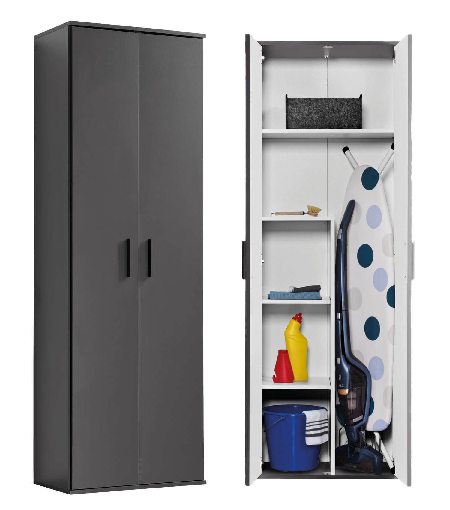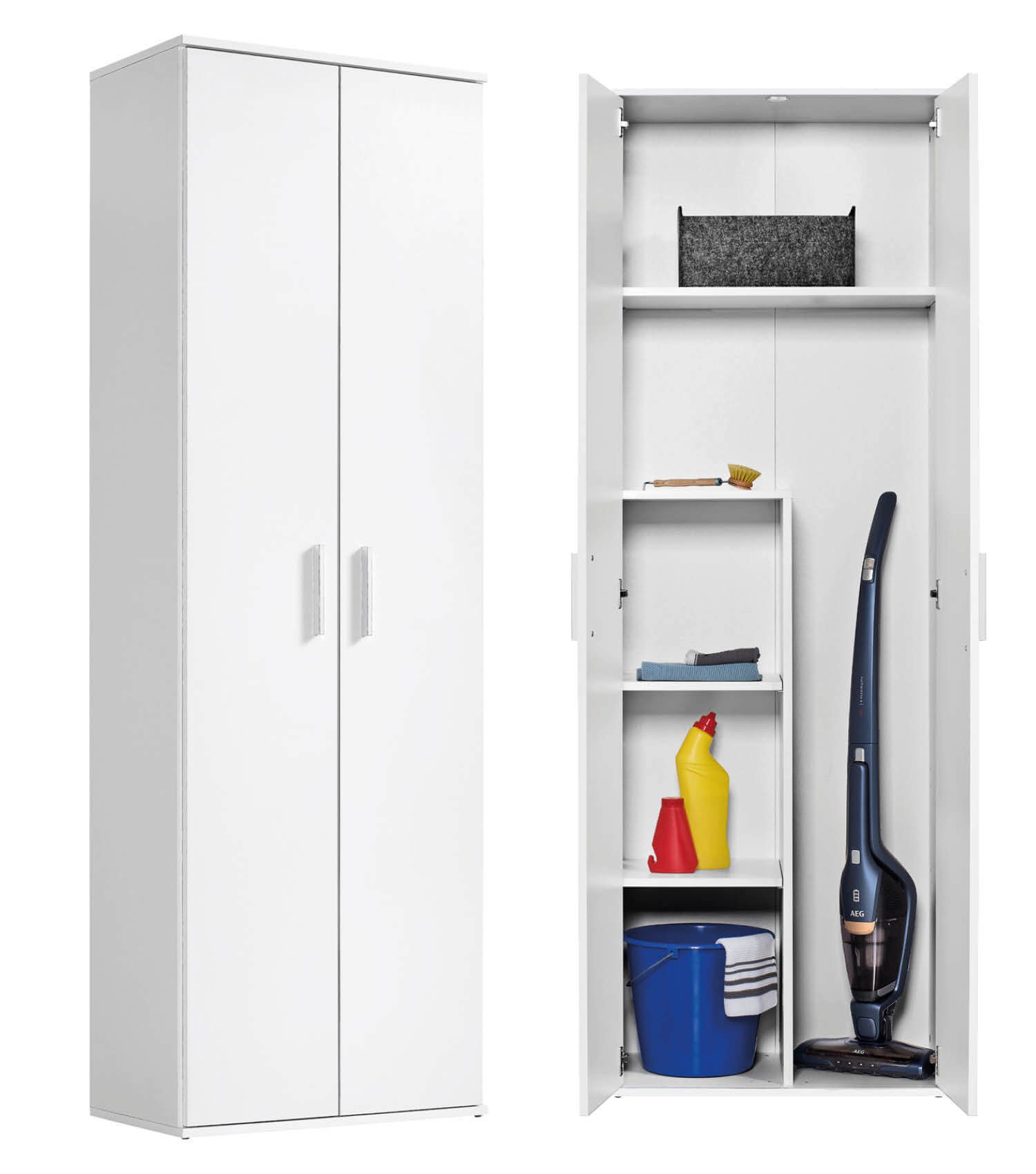 • Besenschrank mit Stauraum für Staubsauger, Wischer & Co.