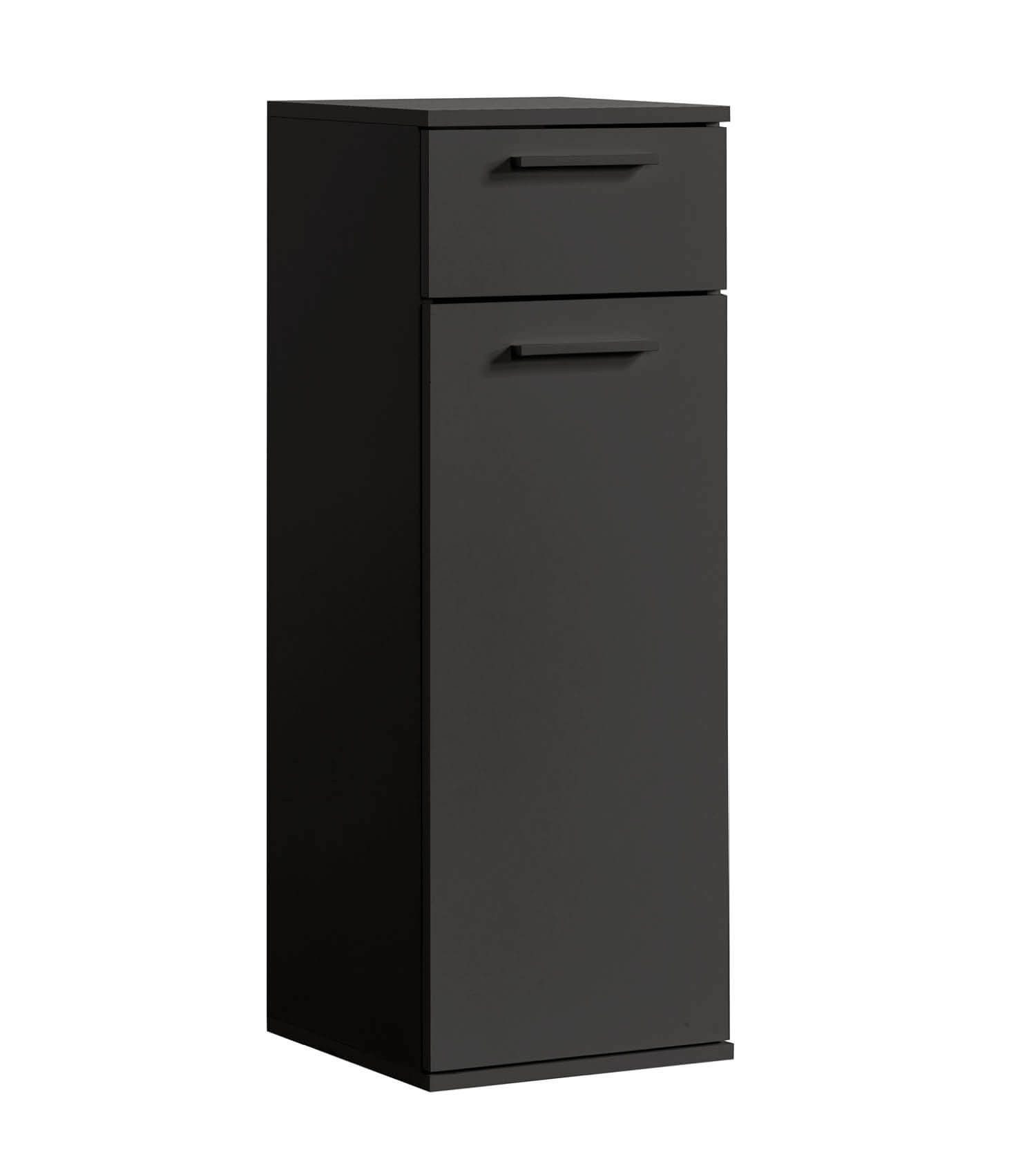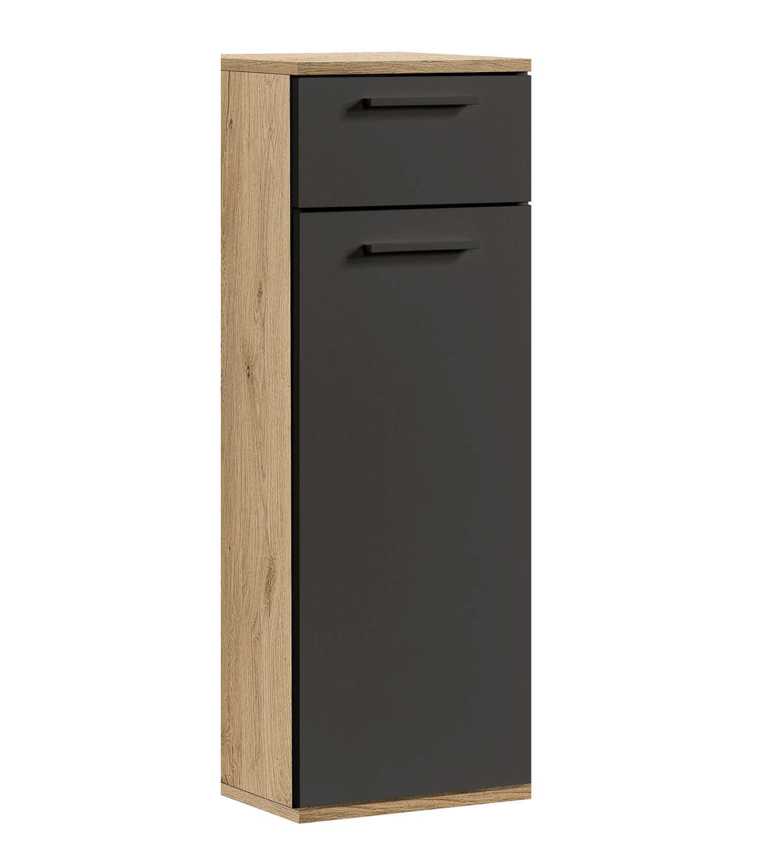 Materialeigenschaften | Fronten aus Spanplatte mit strapazierfähiger Melaminbeschichtung in mattem Weiß und Anthrazit. Kratzfeste, strapazierfähige & sehr pflegeleichte Melaminharzbeschichtung und handliche Kunststoffgriffe. |