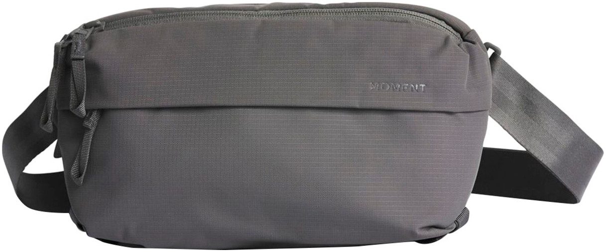 Der Everything Sling ist eine moderne Gürteltasche von Moment in minimalistischem Design. Sie lässt sich am Träger in verschiedenen Stufen individuell anpassen und bietet mit einem Volumen von vier Litern Platz für alle wichtigen Gegenstände im Alltag - von Geldbörse über Schlüssel und Smartphone bis hin zu kleinen Kameras. Die Tasche besteht aus recycelten Materialien und wurde mit einer wasserabweisenden Beschichtung versehen sowie mit zwei Lagen wasserabweisendem PU verstärkt, damit sie wirklich jedem Abenteuer standhält und sich trotzdem angenehm am Körper anfühlt. Die äußeren Schlaufen bieten eine Befestigungsmöglichkeit für eine Jacke oder ein Stativ. Für besonders wichtige Gegenstände ist auf der Rückseite eine versteckte Tasche angebracht, hier kann zum Beispiel ein Pass oder Geld auf Reisen sicher verstaut werden. Das weiche Nylon an den Trägern ermöglicht es, die Everything Sling mühelos den ganzen Tag über zu tragen. Der Träger lässt sich individuell einstellen, sodass die Tasche je nach Situation zum Beispiel über die Schulter oder um den Bauch getragen werden kann. Die Gürteltasche ist aus strapazierfähigem Canvas und Ripstop gefertigt, im Inneren ist die Tasche mit Mikrofaser ausgekleidet, sodass alle Geräte geschützt sind. Mit dem leichten und dennoch strapazierfähigen Design eignet sich die Tasche ideal für Wanderungen, Arbeitsweg oder Straßenfotografie, um die Dinge einfach zu halten, ohne auf Funktionalität zu verzichten.