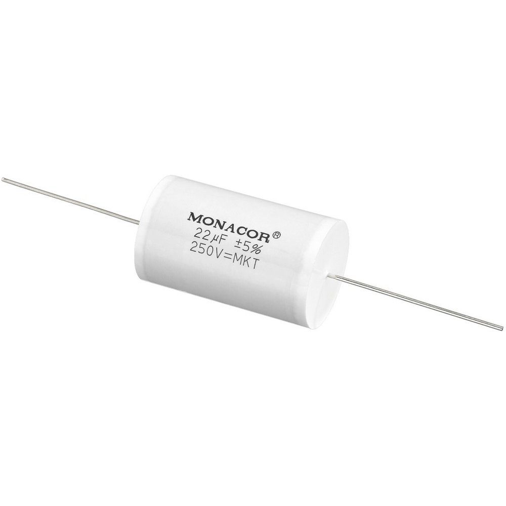 MKT-Folienkondensatoren, 250 V · Kondensatoren in Spitzenqualität für hochwertige Frequenzweichen · Metallbeschichtete Polyesterfolie · Sehr geringer Verlustfaktor · Alterungsfrei · Axiale BauformMKT-Folienkondensator, 250 V