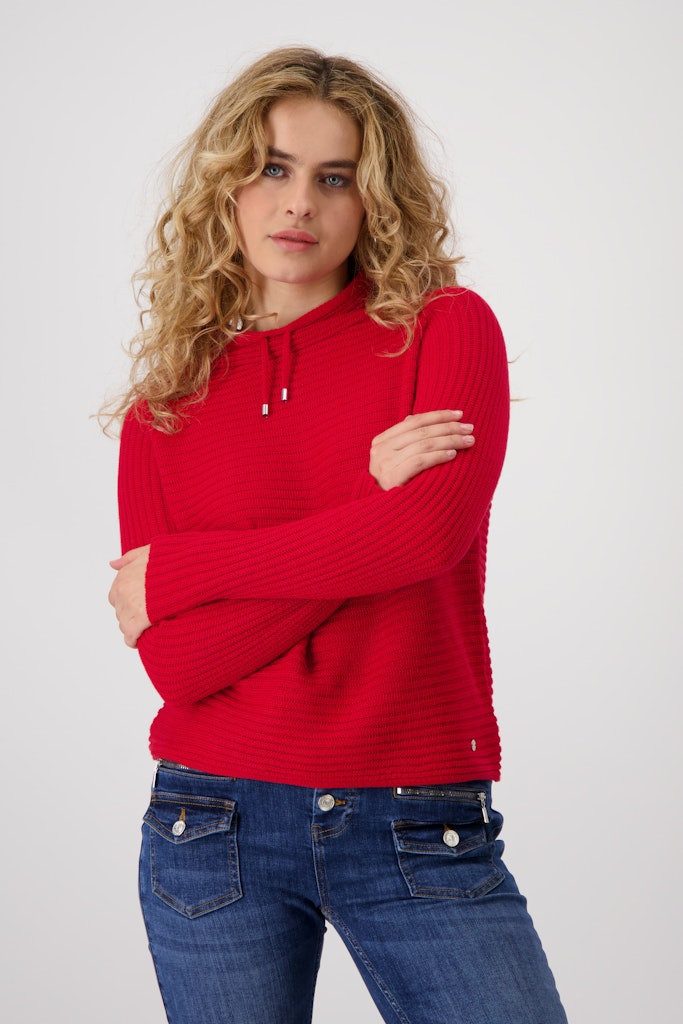 Der Pullover von monari besticht durch sein zeitloses Design mit patentierter Querrippe und einem modischen Stehkragen mit Bindeband.