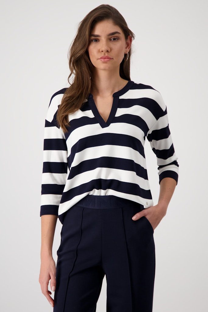 Dieses Ringel-Sweatshirt aus fließender Viskose überzeugt mit elastischem Material und einem Rundhalsausschnitt mit Schlitz.* Oberstoff: 80% Viskose, 15% Polyester, 5% Elasthan