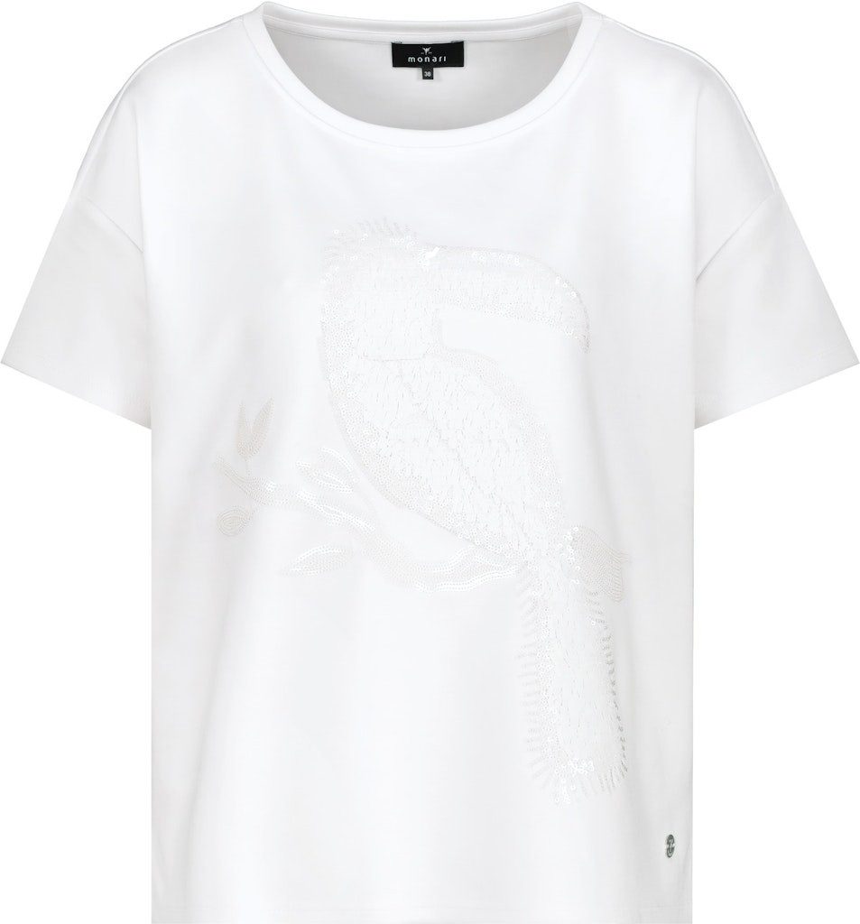 Dieses elegante weiße Sweatshirt von monari zieht durch sein einzigartiges Kakadu-Muster, das aus tonigen Pailletten gefertigt ist, alle Blicke auf sich. Die fließende Viskosemischung sorgt für ein angenehmes Tragegefühl, während das elastische Material eine sanfte Haptik verleiht. Ein perfektes Kleidungsstück für einen lässig-chicen Look.