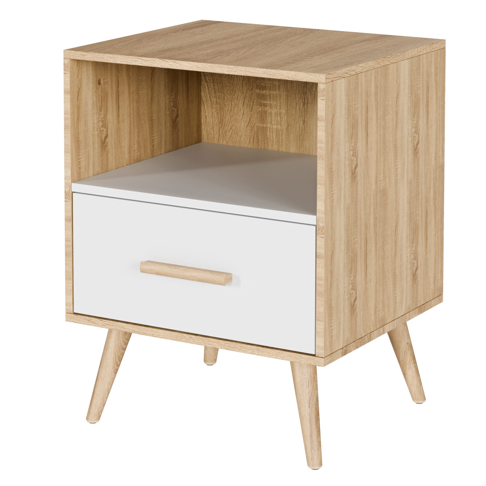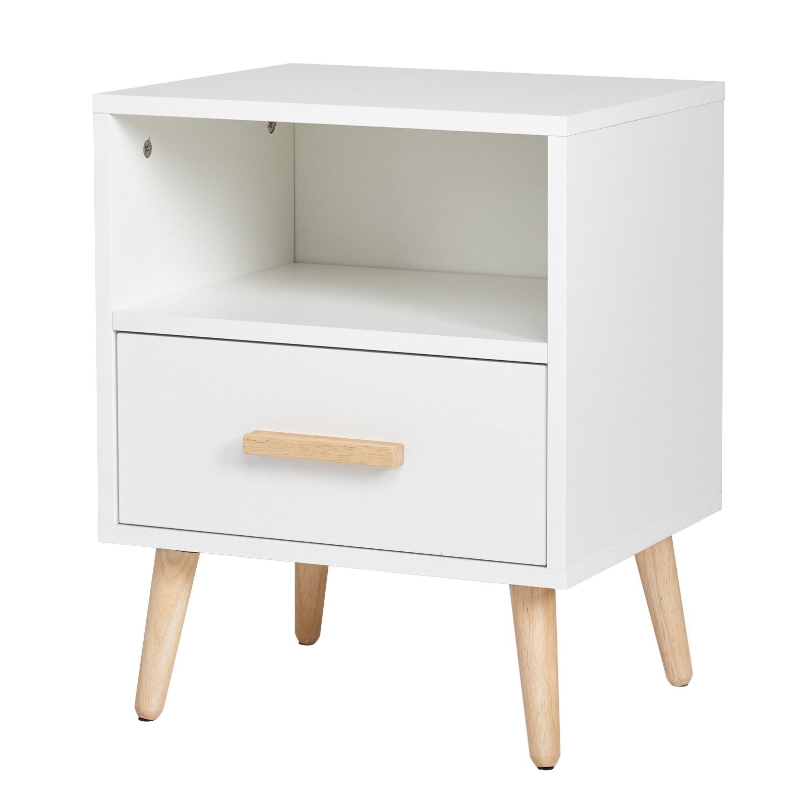 [Angemessene Stauraumkapazität] - Der Nachttisch verfügt über einen offenen Stauraum und eine ausziehbare Schublade mit Griffen, wobei Komfort und Privatsphäre berücksichtigt werden. Sehr gut geeignet für die Aufbewahrung von Büchern, Fotos, Dekorationsgegenständen usw.